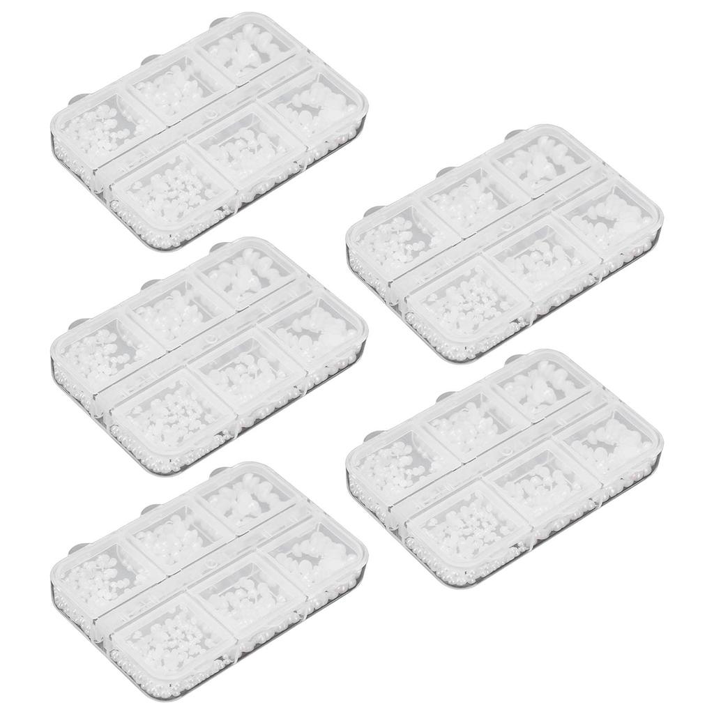 5 Boxes Nail Charms Cute Beads Fake Rhinestones Nail Art Decoration Manicure Charms White A01