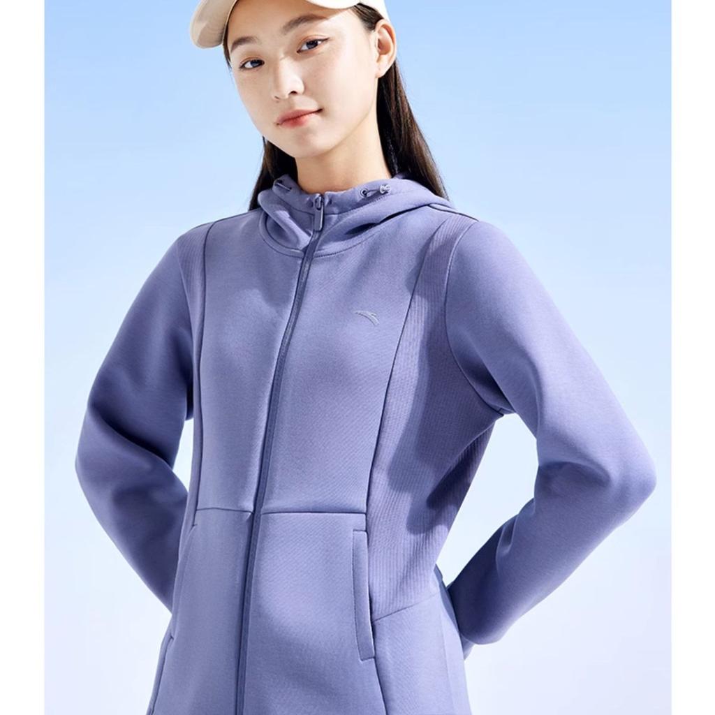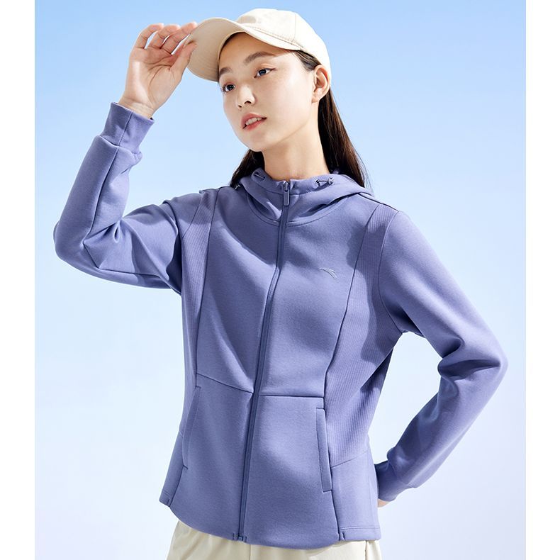 Anta Комплексная серия тренировок Однотонная куртка с капюшоном на молнии с длинным рукавом Женские куртки Моран-фиолетовый 162337717-2
