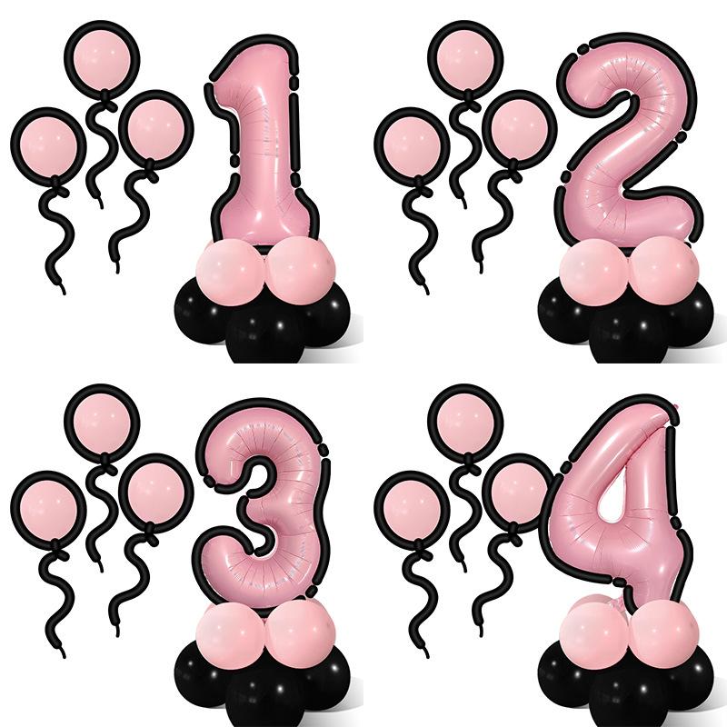 Comic Style Black Powder Digital Balloon Column Children'S First Birthday Party Decoration Scene Arrangement Photo Props