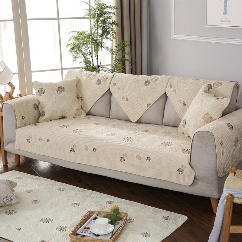 Тканевая двусторонняя стеганая вышитая подушка для дивана Прямые продажи, Хлопчатобумажная ткань Стиранный чехол-полотенце для дивана Универсальный для всех сезонов
