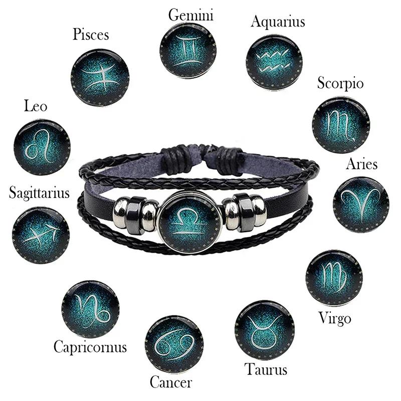 12 Созвездий Светящийся Браслет Мужской Женский Парный Многослойный Плетеный Вручную Браслет-Шарм из ПУ Кожи Ювелирные Изделия Подарки