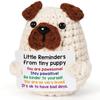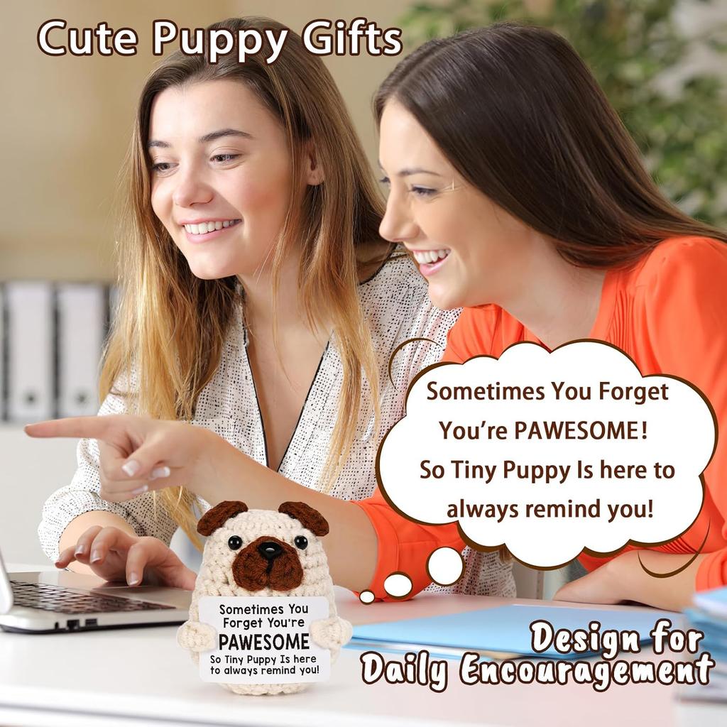 Забавный вязаный крючком щенок с карточкой, излучающий позитивную энергию, настольное украшение, вязаная вручную кукла собаки для эмоциональной поддержки, украшение для дома, комнаты