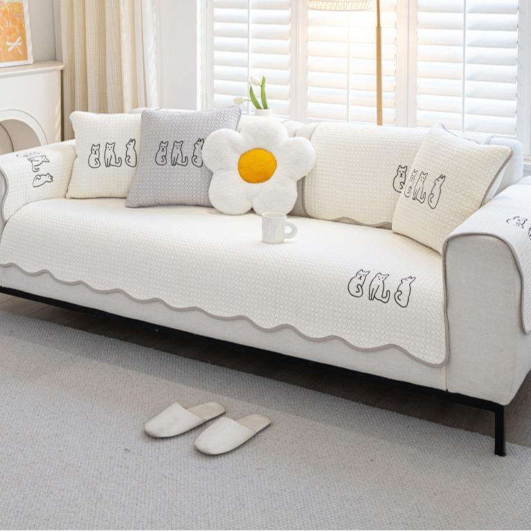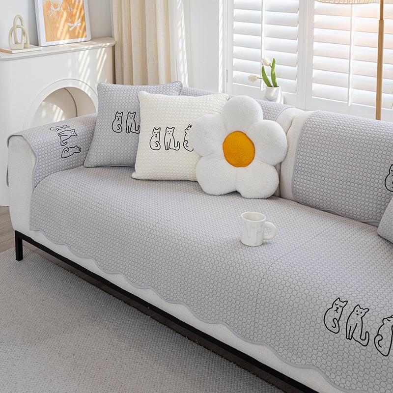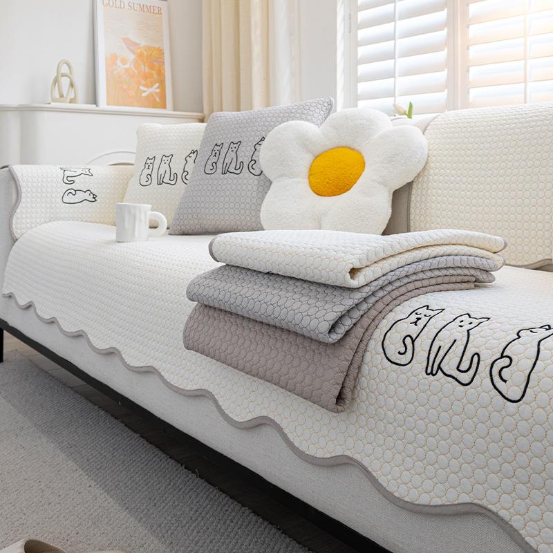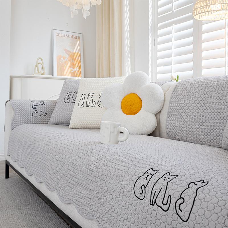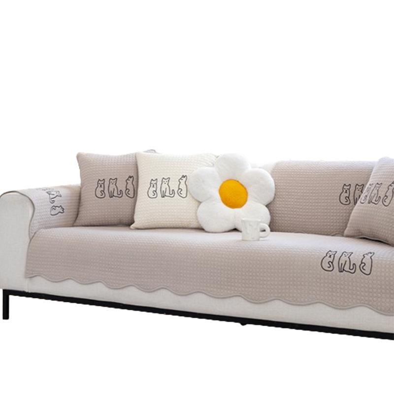 Мультяшная подушка для дивана, Универсальная для всех сезонов, Подушка для сиденья из чистого хлопка, Простой хлопковый нескользящий диванный чехол, Тканевая накидка-подушка