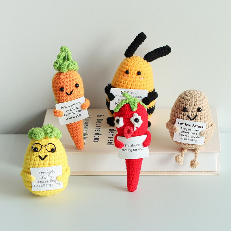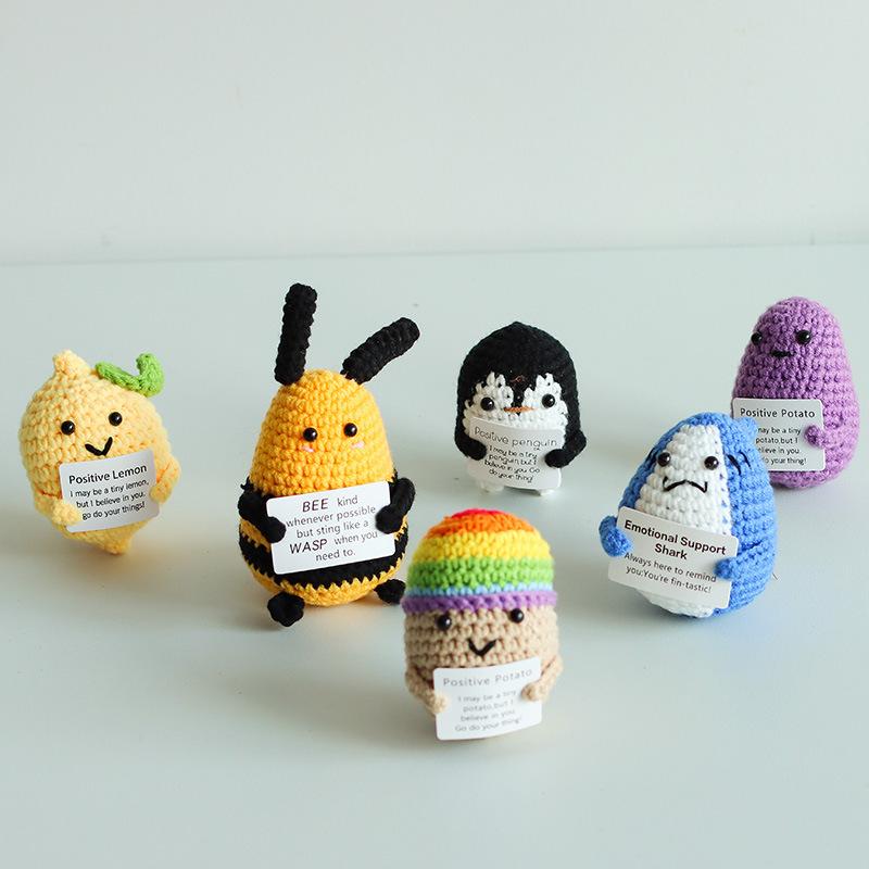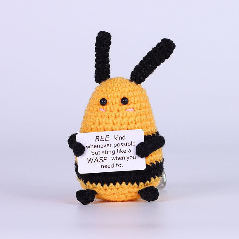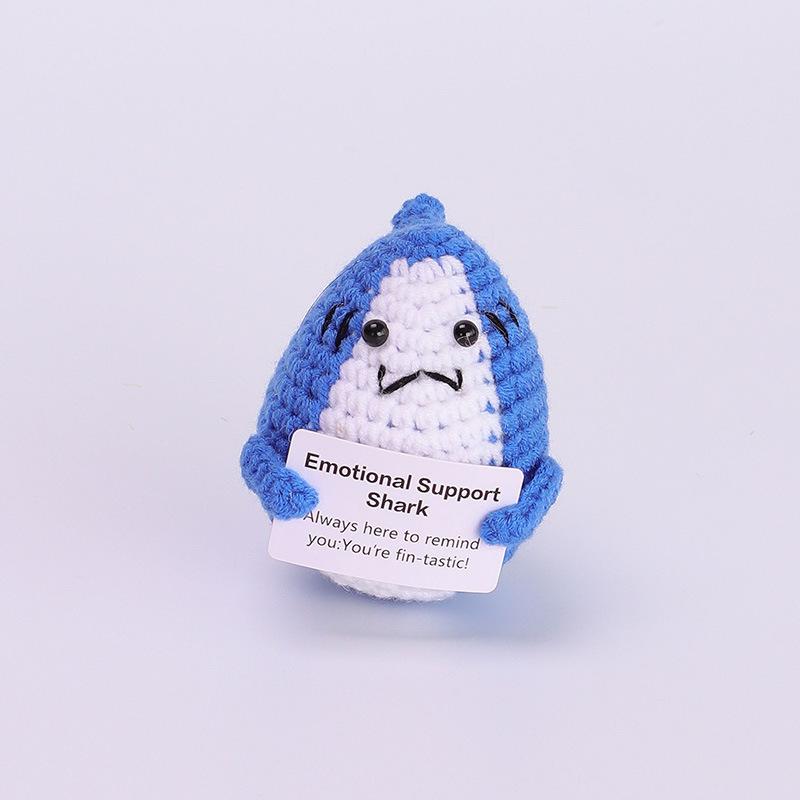 Забавная вязаная крючком кукла-акула, излучающая позитивную энергию, с карточкой, украшение для дома, комнаты, ручная работа, вязаная из шерсти пчелка, рождественский подарок для вечеринки