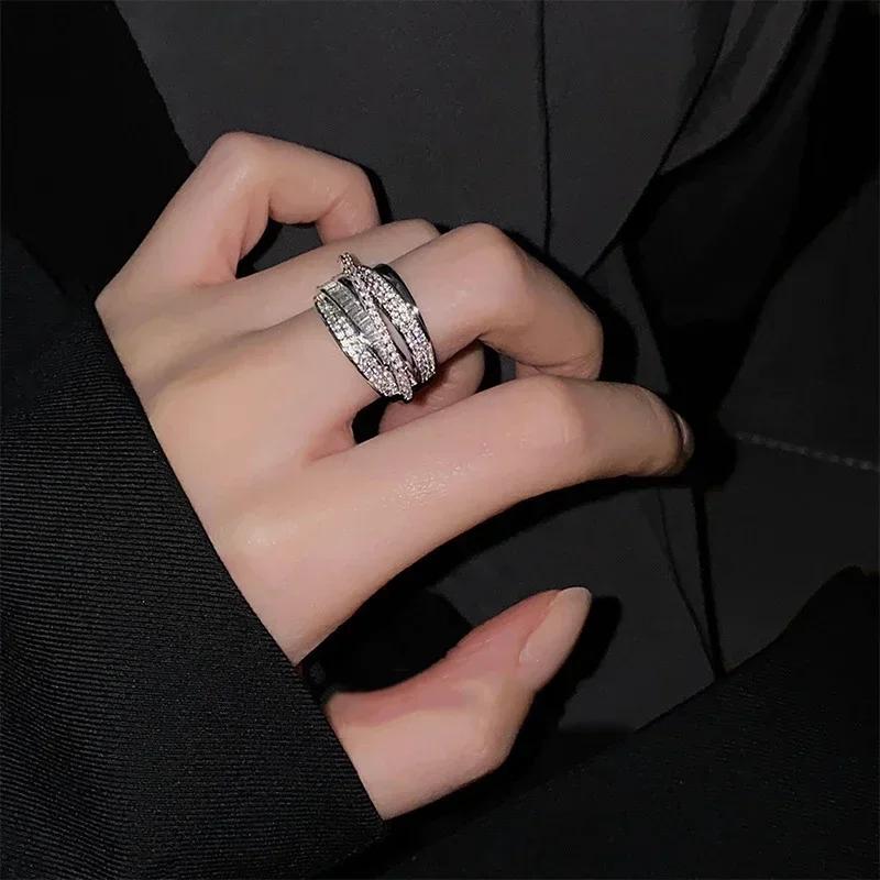 2025 Кольцо со стразами серебристого цвета Многослойные кольца-обмотки для женщин Свадебные кольца для пальцев с полным цирконом Модные ювелирные изделия Подарки