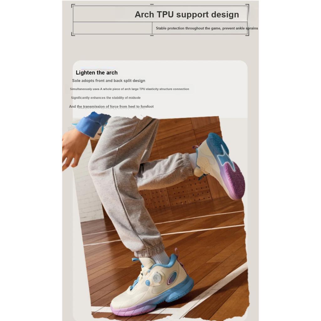 Li Ning Детские Удобные Спортивные Нескользящие Амортизирующие Износостойкие Отскок Дышащие Баскетбольные Кроссовки Детские Баскетбольные Кроссовки Белые YKBU092-9