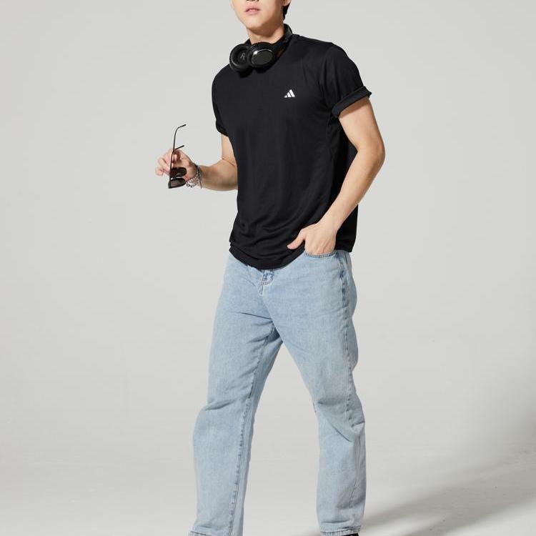 Adidas Логотип Дышащая Спортивная Повседневная Футболка с Круглым Вырезом и Коротким Рукавом Мужские Топы JG1306