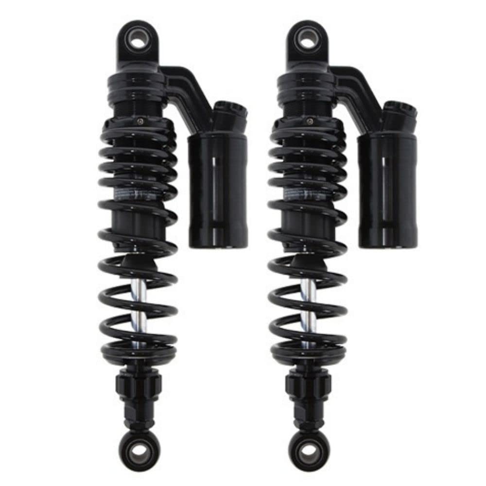 This is a set of two high-performance Ohlins-type rear suspensions, highly popular for both their design and quality. The all-black design features a uniform black body, tank, and springs, giving your bike a dressy, classic look. These universal parts are compatible with a wide range of bikes, from current models to classics, as long as the dimensions are correct. They can be used for a variety of styles, including cafe and ska-tuned styles. Why not dress up and customize your beloved bike?
