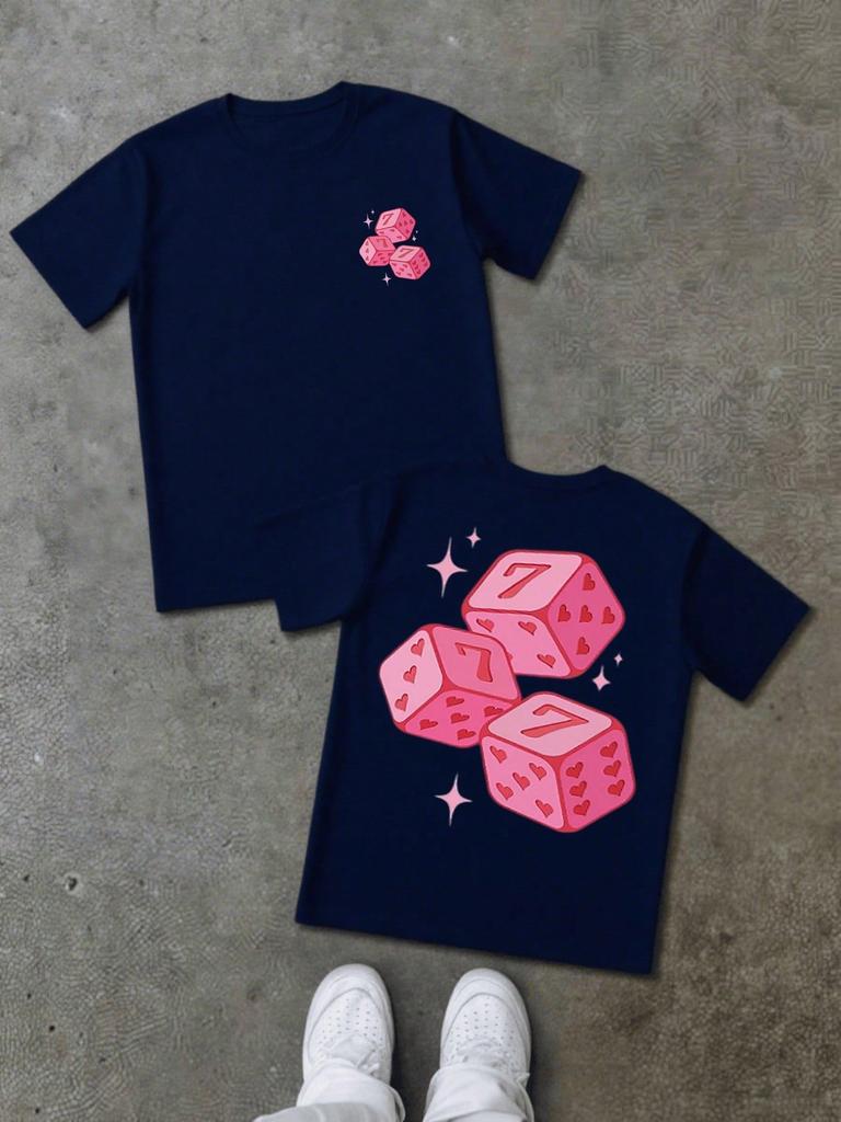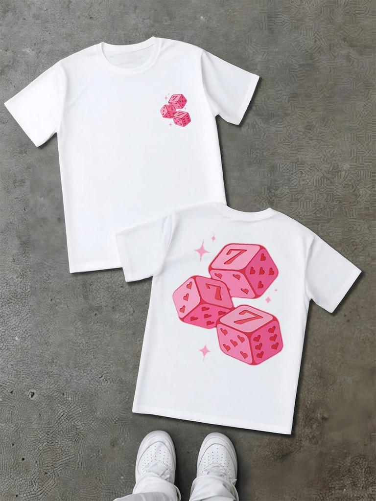 Lucky Seven Pink Dice Double Sided Digital Printed 100% Cotton T Shirt 1Pcs Men's Casual Tee 220g Gambling Theme