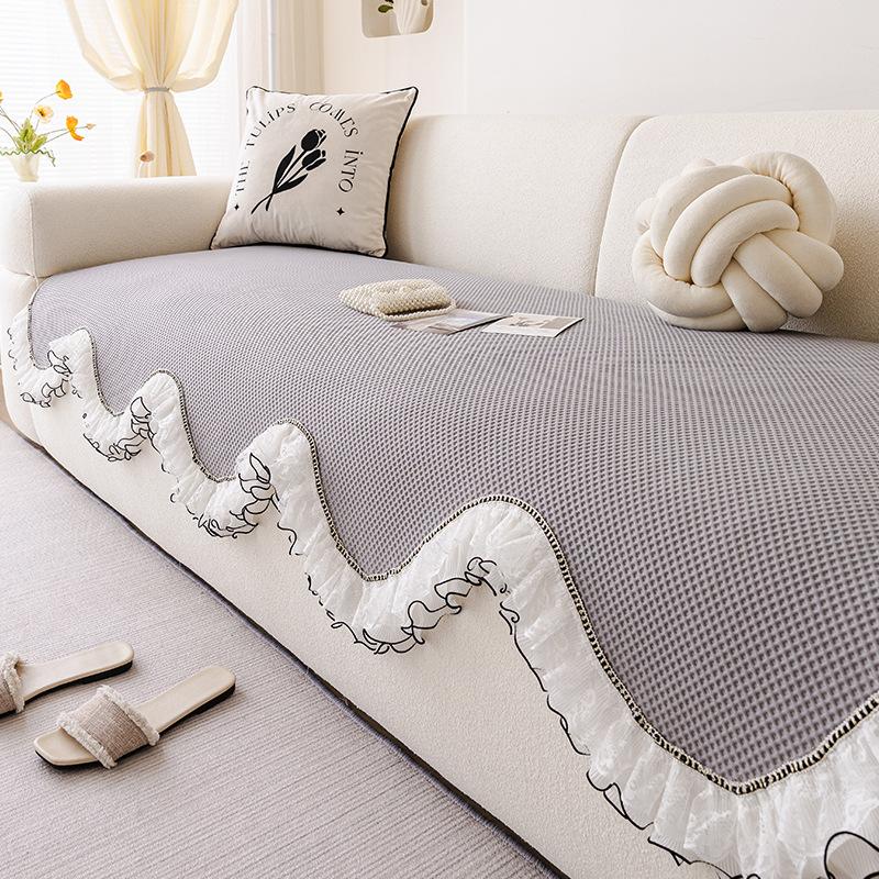 Летняя подушка для дивана особой формы, вафельная, с охлаждающим эффектом, из ледяного шелка, нескользящий коврик, чехол-полотенце для дивана, цельный