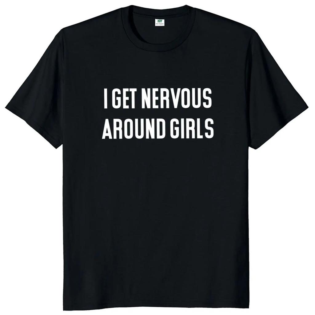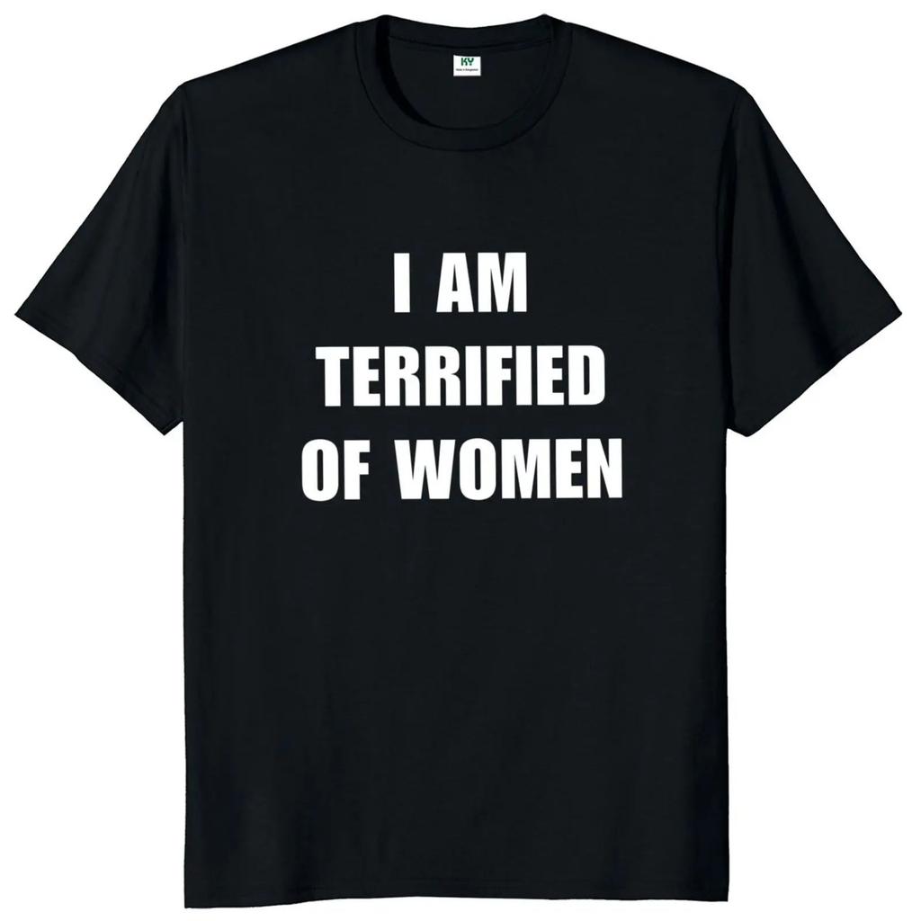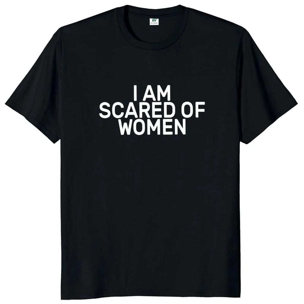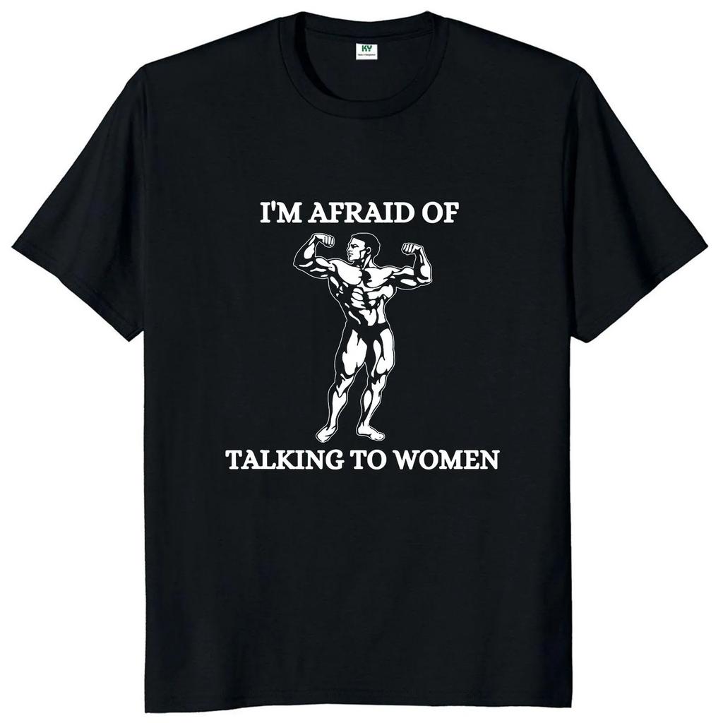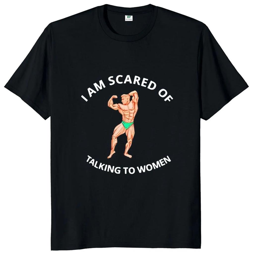 Я боюсь женщин Футболка Юмор Шутки про интровертов Гик Y2k Мужская одежда 100% хлопок Унисекс Повседневная футболка с круглым вырезом Топы Размер ЕС