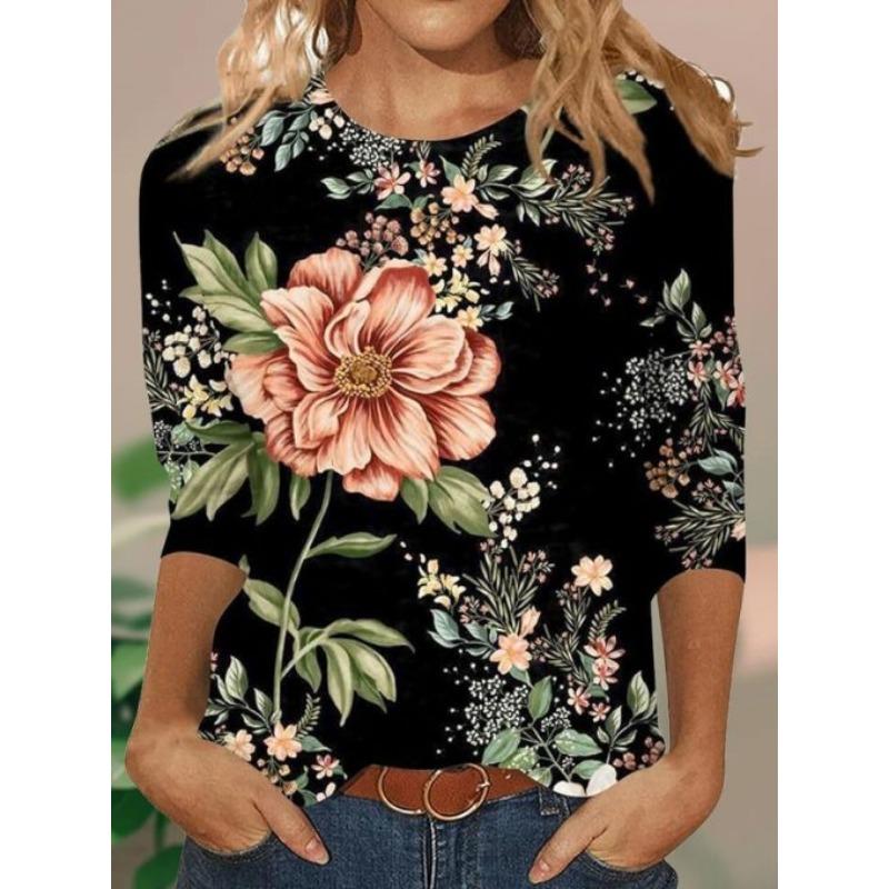 Женская футболка с 3D-принтом, винтажным цветочным принтом, повседневная, с длинным рукавом, круглым вырезом, обычный топ, с повседневным принтом, розовая, весна и осень — купить товар онлайн с бесплатной доставкой по всему миру!