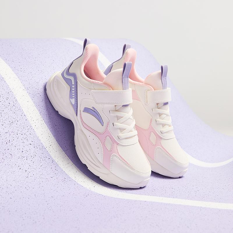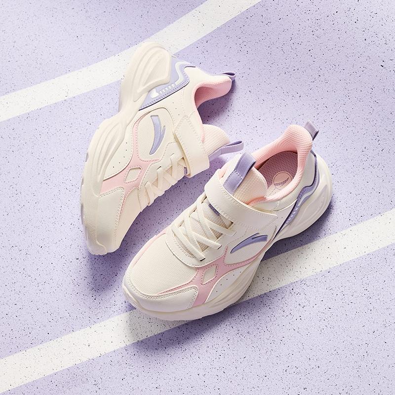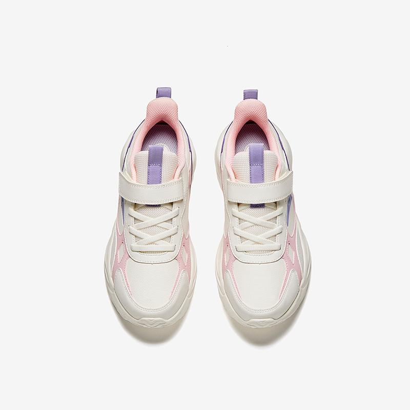 Anta Детская ткань из синтетической кожи, модная, универсальная, легкая, амортизирующая, низкие кроссовки для бега, детские кроссовки, бело-розово-фиолетовые A22445577N-1