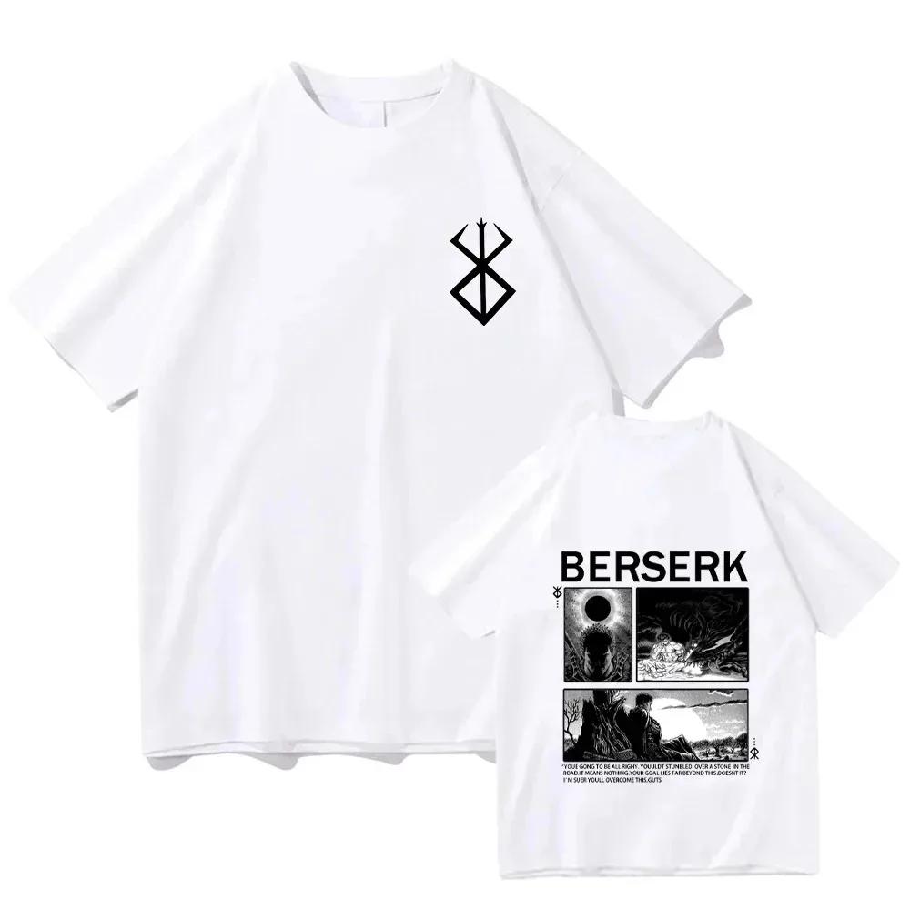Футболка Berserk Guts Футболка Мужская крутая манга Японское аниме Женская хлопковая футболка Harajuku Manga Хип-хоп Футболка большого размера Одежда Топы