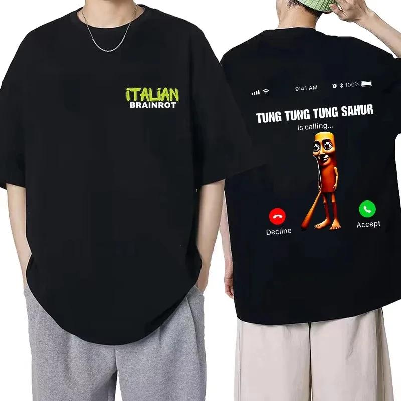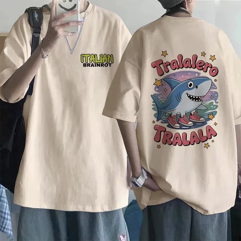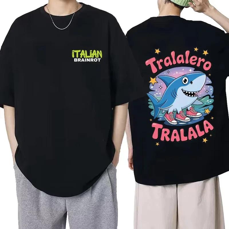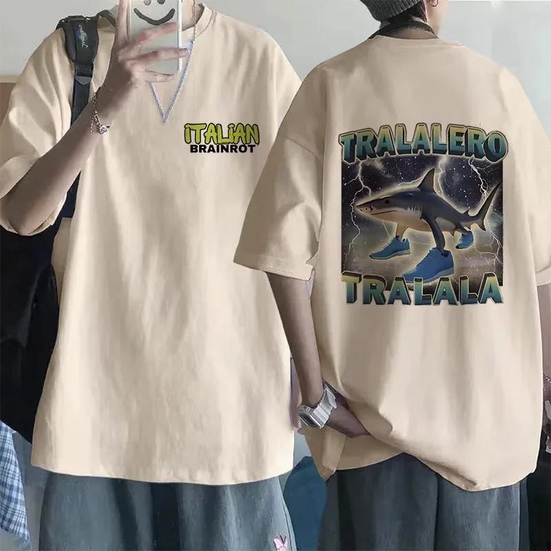 Тралалеро Тралала Смешной Итальянский Мозголом Мем Принт Хлопковая Футболка Летняя Мужская Женская С Коротким Рукавом Футболки Повседневная Спортивная Свободная Верх