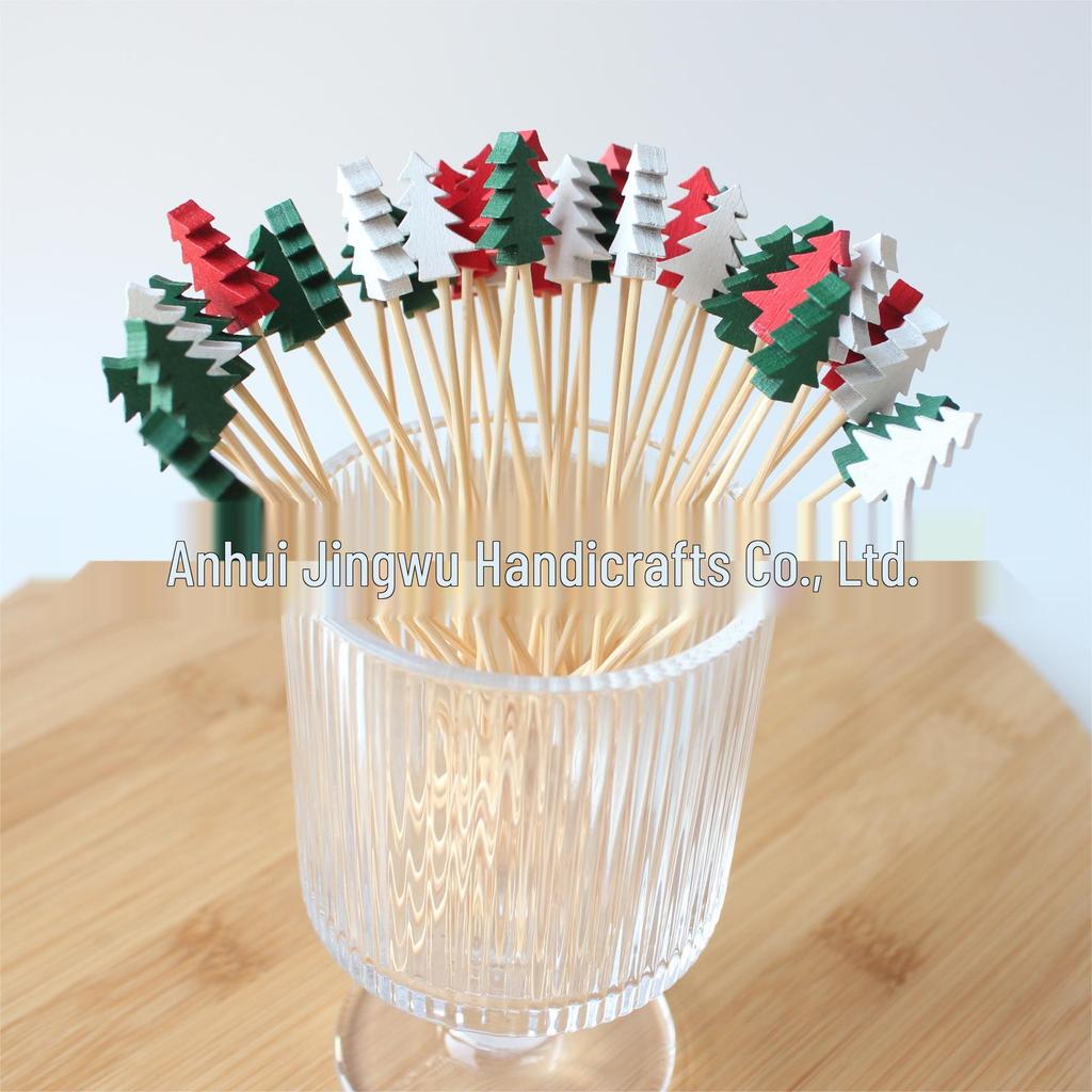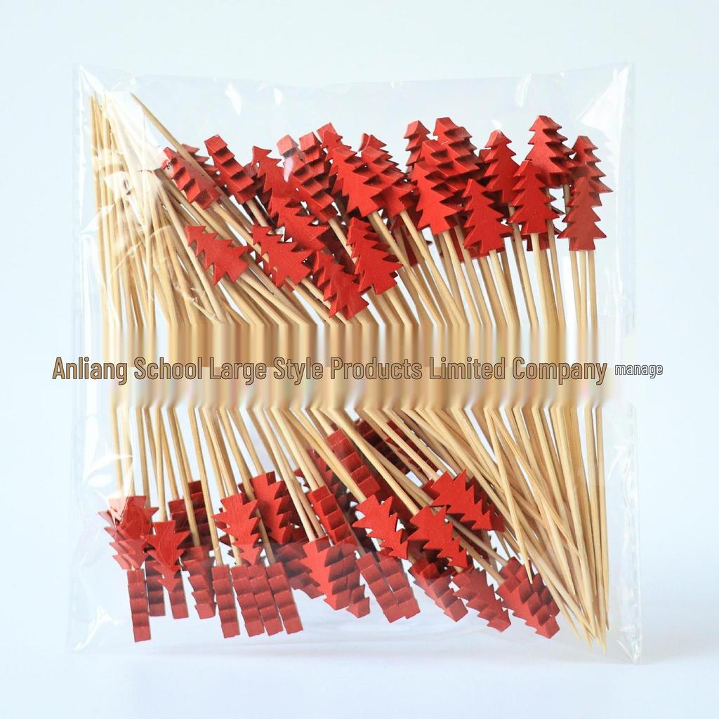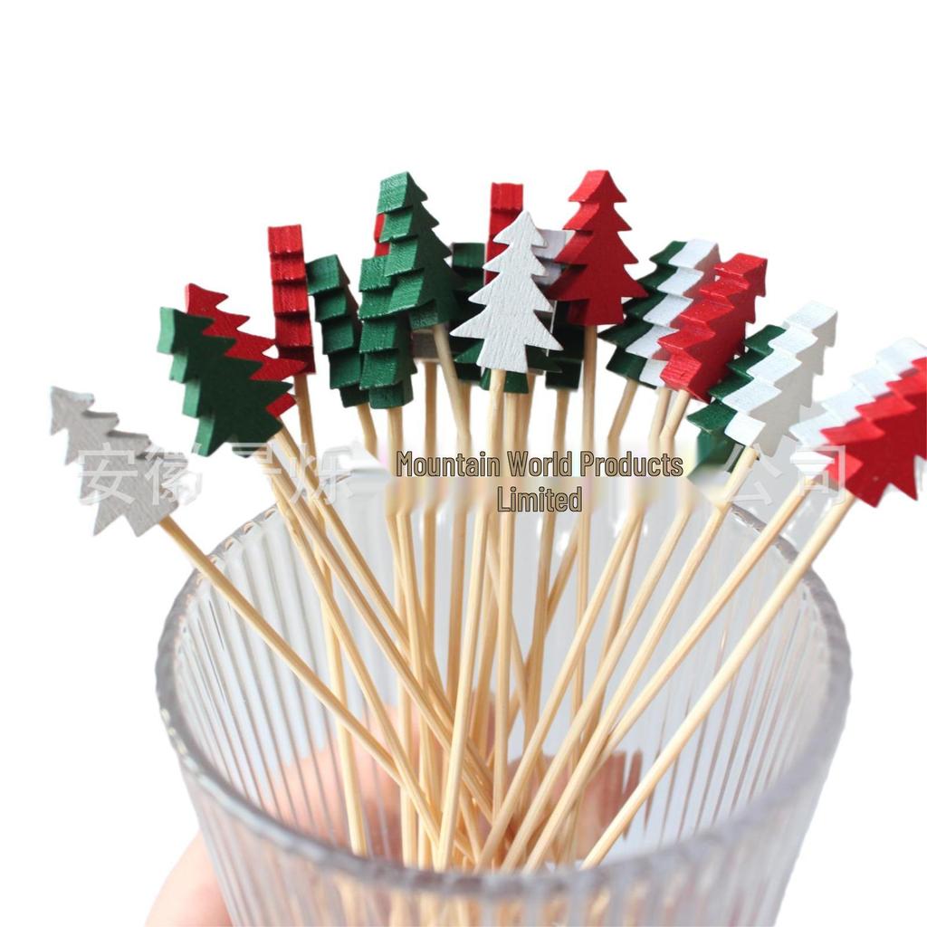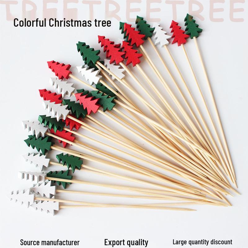 Цветные бамбуковые зубочистки для рождественской елки: Палочки для фруктов и украшений в виде сосновых веток, одноразовые шпажки