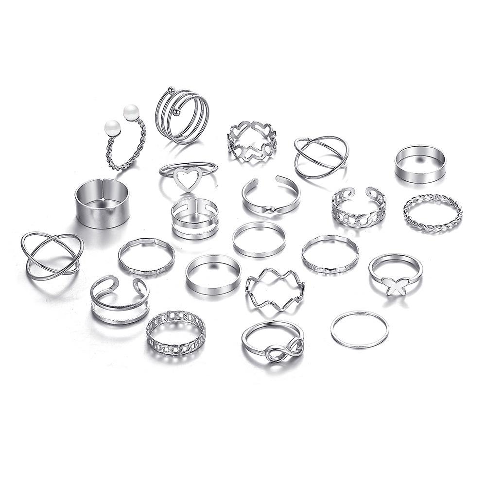 Набор из 22 открытых колец с несколькими шарнирами: Дизайны с сердечками и бабочками для женщин