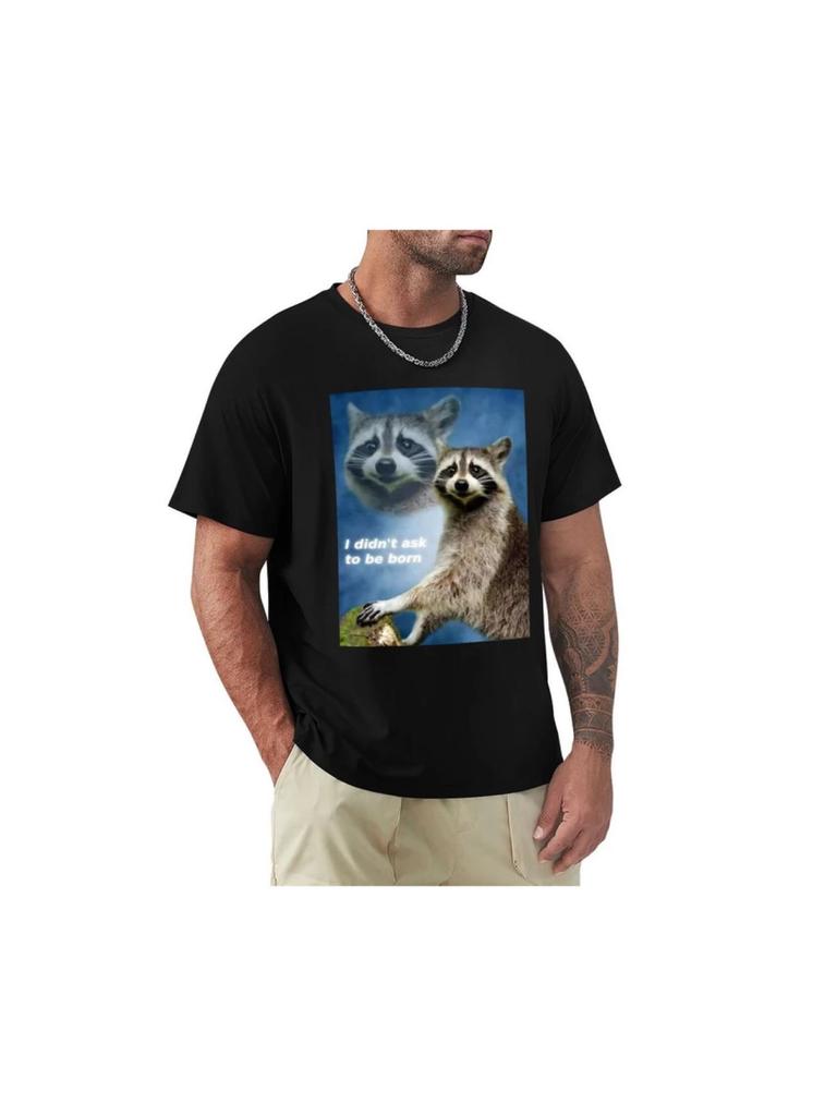 I Didnt Ask to Be Born Raccoon Meme T-Shirt Vintage Clothes Short Sleeve Tee Quick Drying shirt Short Sleeve Tee Men 77899
