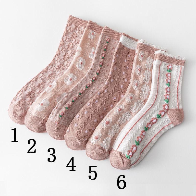 Винтажные розовые носки средней длины с цветочным узором - 1 параРазмер