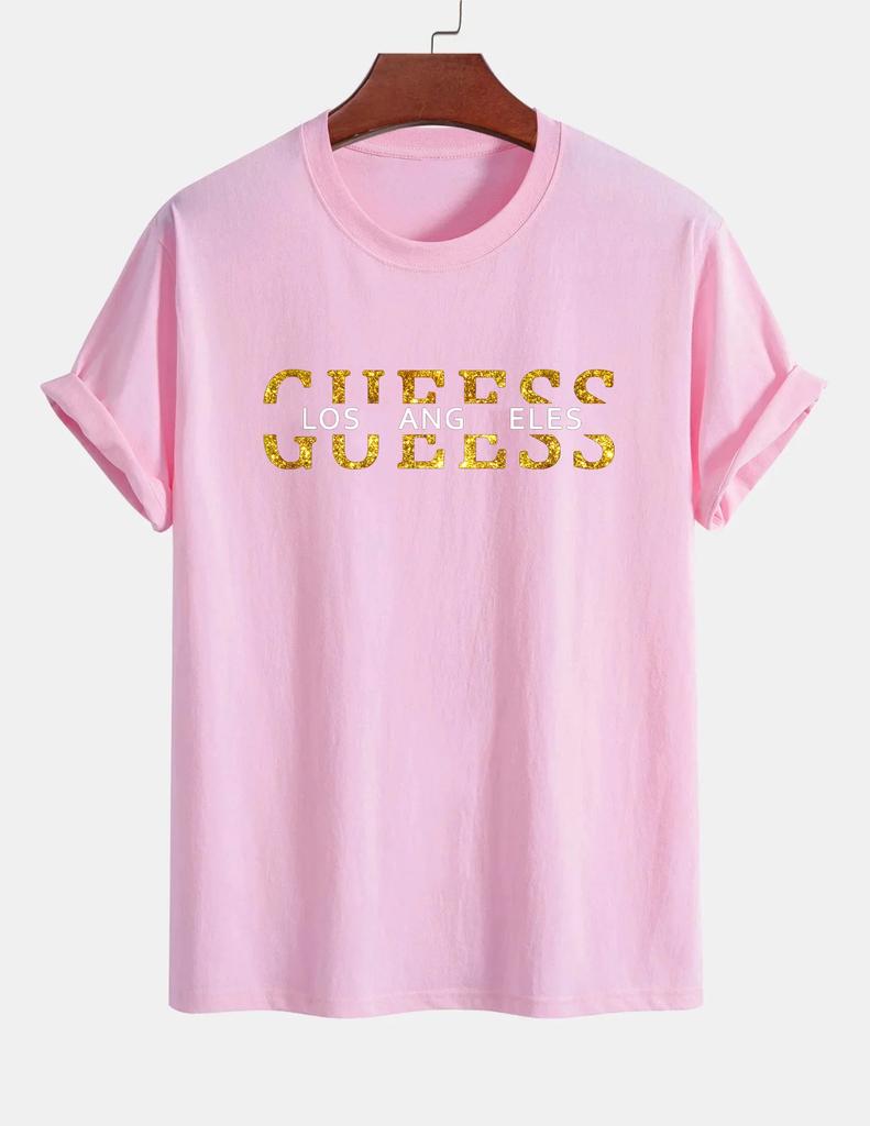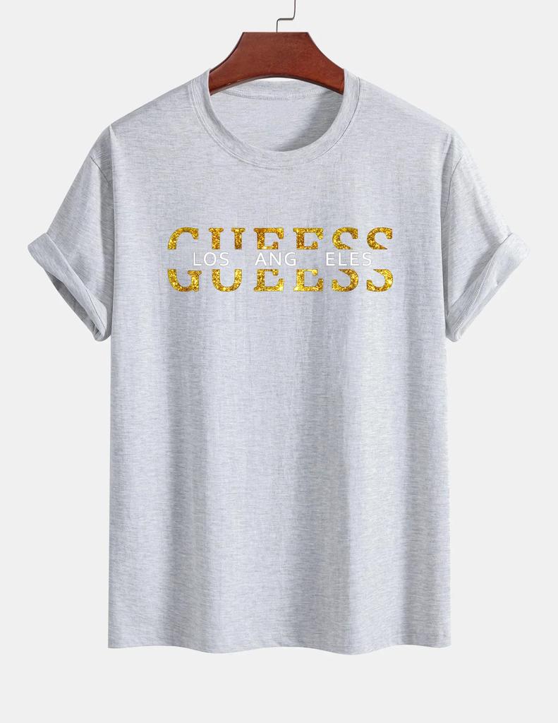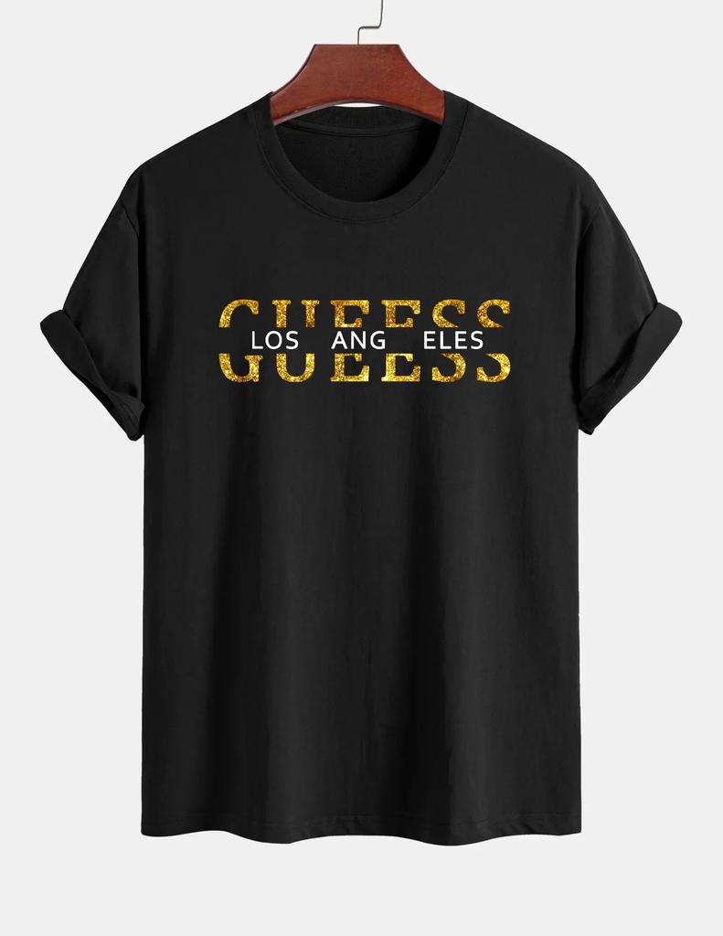 Летняя мужская футболка 2025 года 100% чистый хлопок повседневная свободная модная GUESS Los Angeles надпись принт Харадзюку футболка с коротким рукавом к