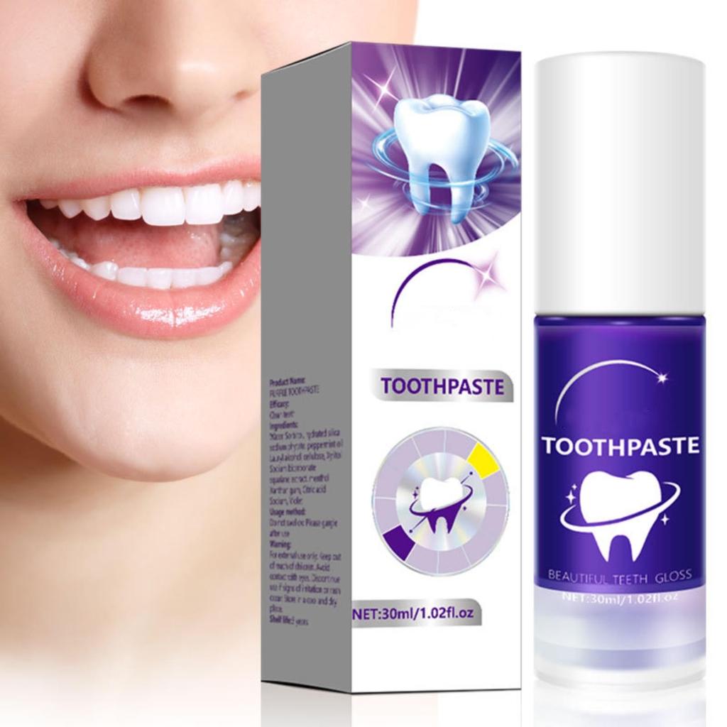 Фиолетовая отбеливающая зубная паста для зубов, глубоко очищает зубы от зубного камня, пятен и запаха изо рта, освежает дыхание, 30 мл