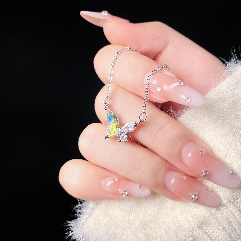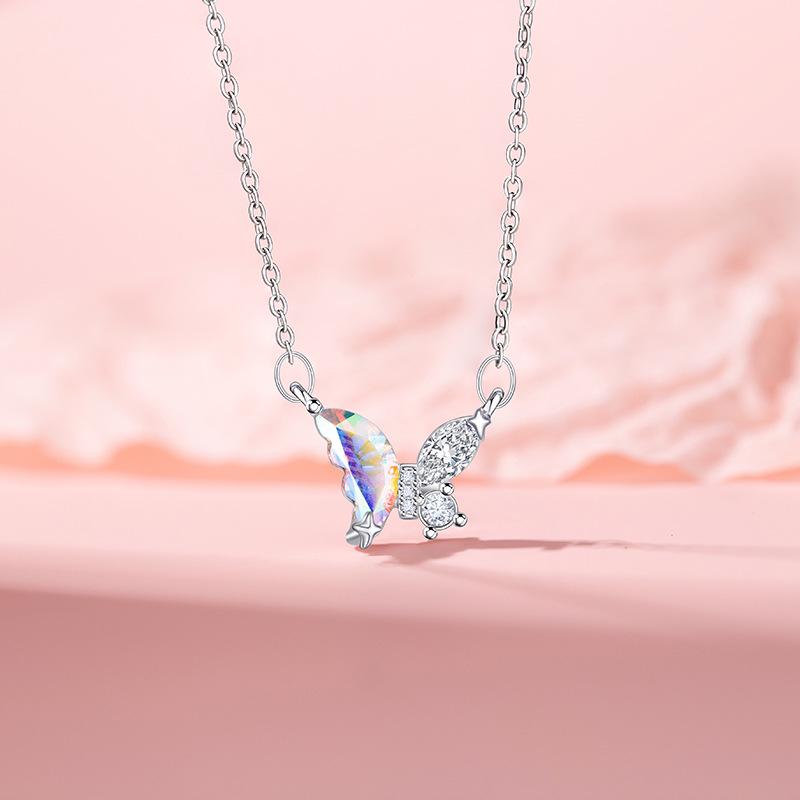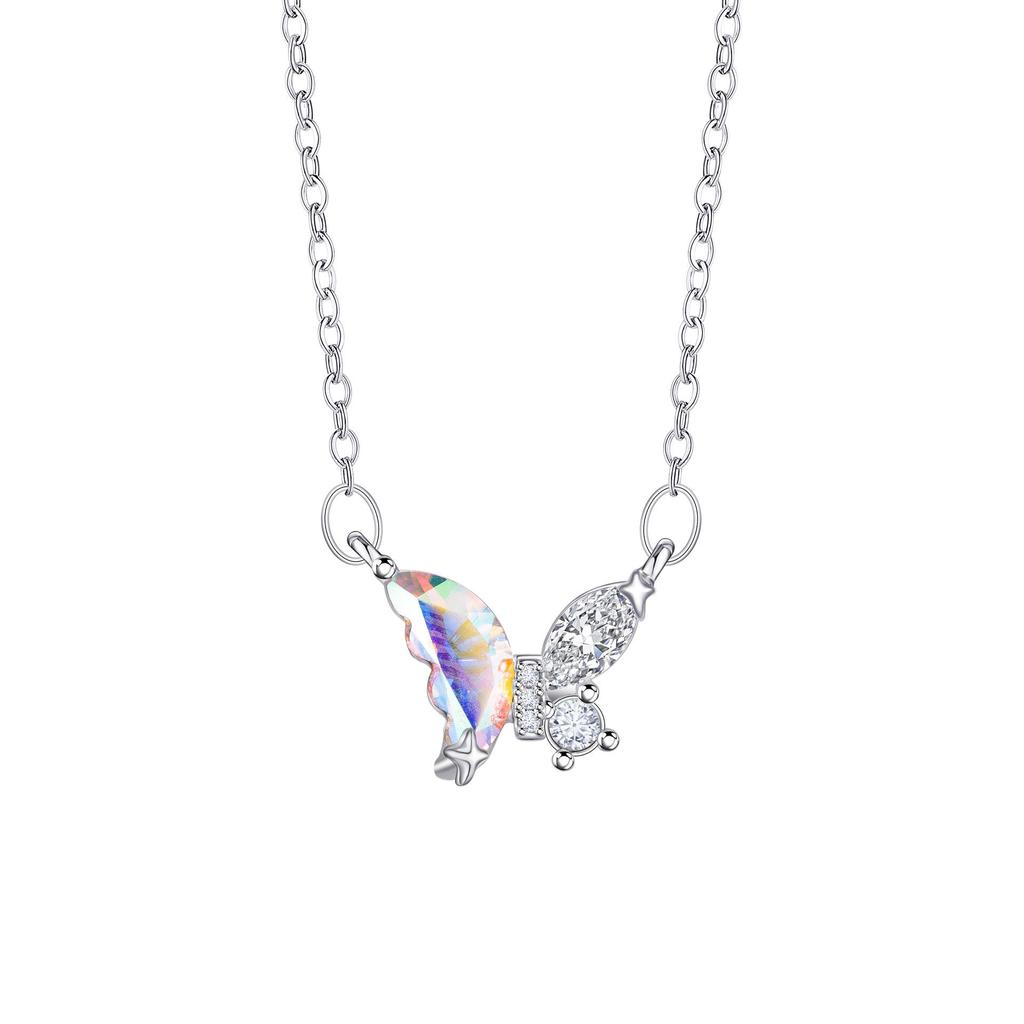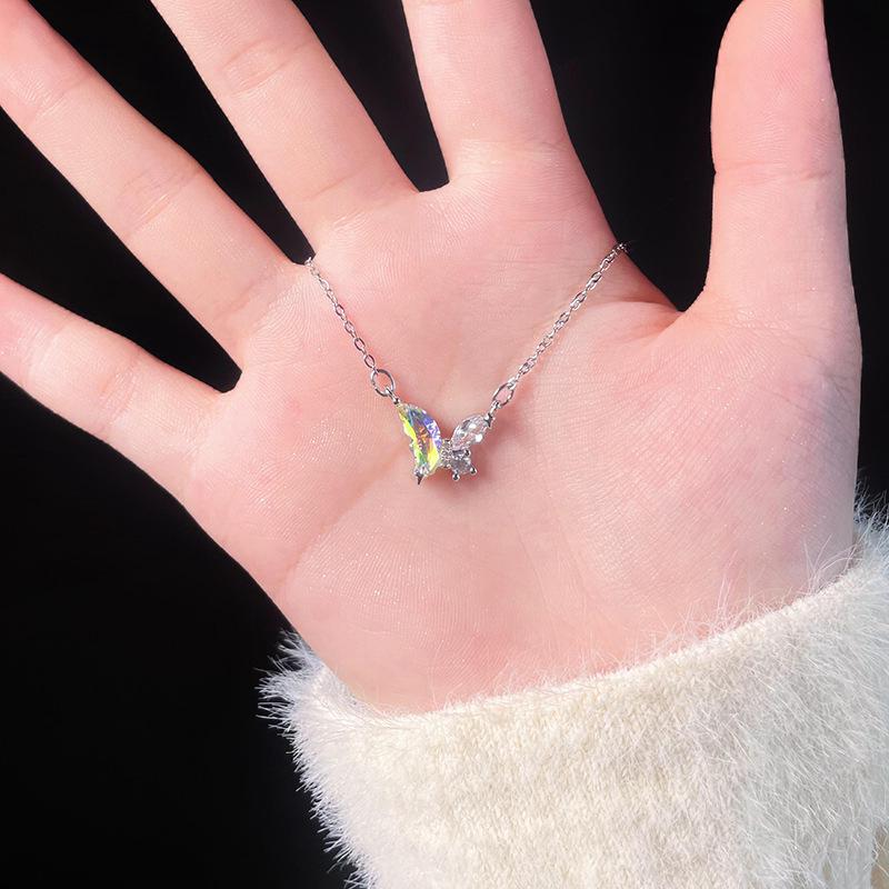 Ожерелье с переливающейся бабочкой, Женская цепочка на ключицу из нержавеющей стали, Ювелирные изделия класса люкс