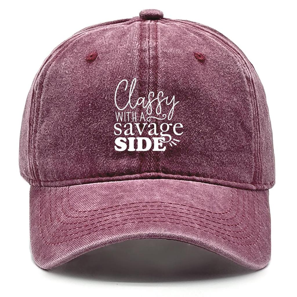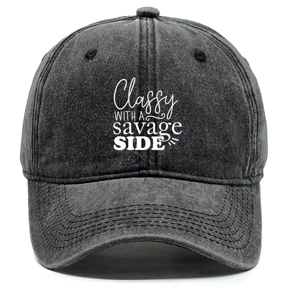 classy savage side" Print Snapback Baseball Cap, Flat Cap Headwear Raw Brim Breathable Curved Brim Adjustable Sun Hat