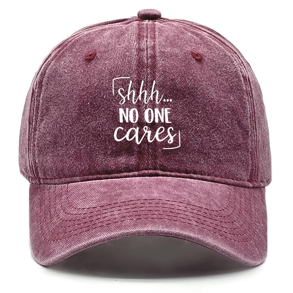 shhh... no one cares" Print Adjustable Baseball Hat, Woman's Cap Raw Brim Fashion Sunshade Unisex Snapback Sun Hat