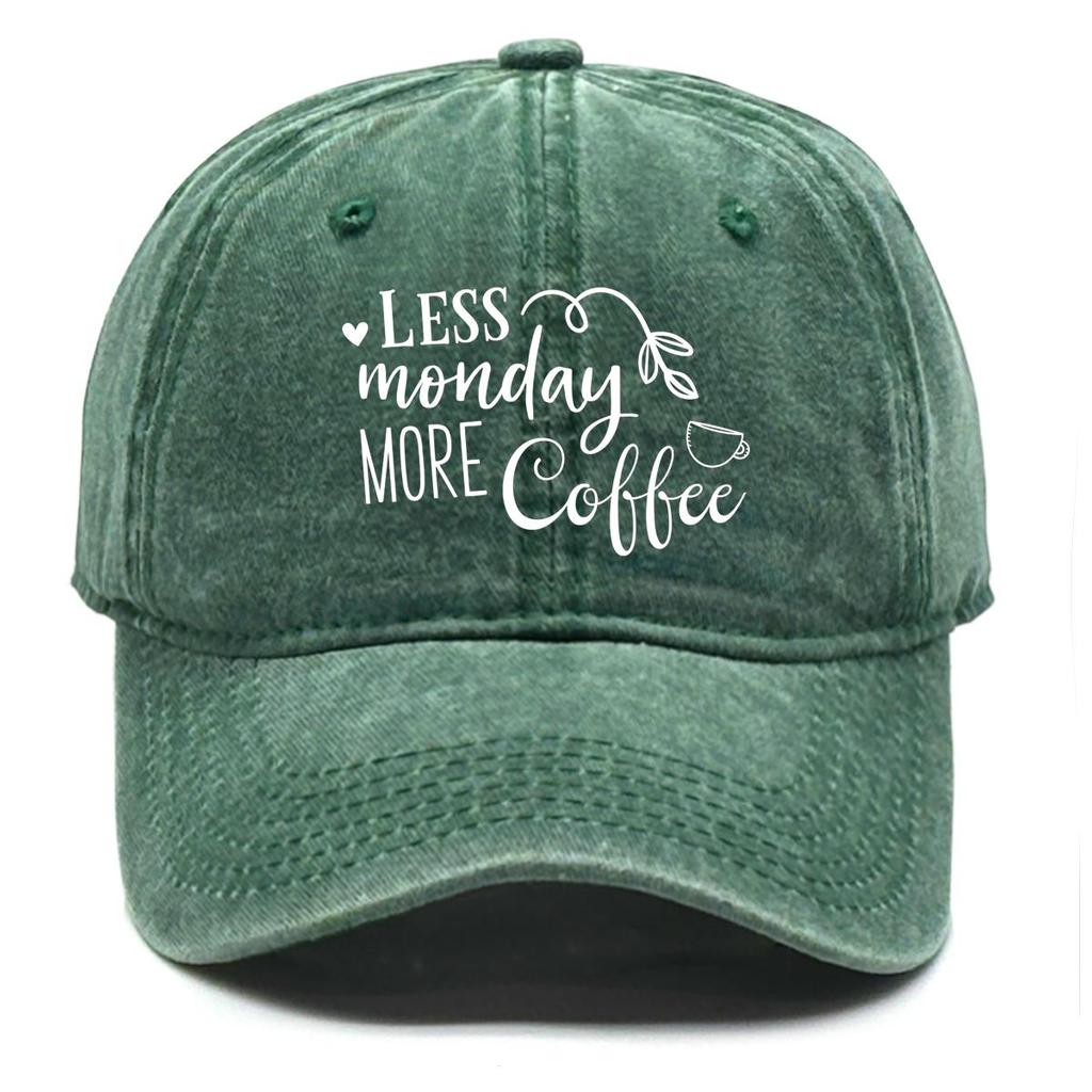 LESS monday MORE Coffee" Print Snapback Baseball Hat, Sports Hat Slouchy Distressed Solid Casual Adjustable Baseball Cap