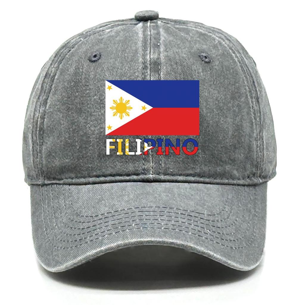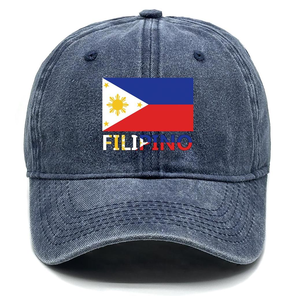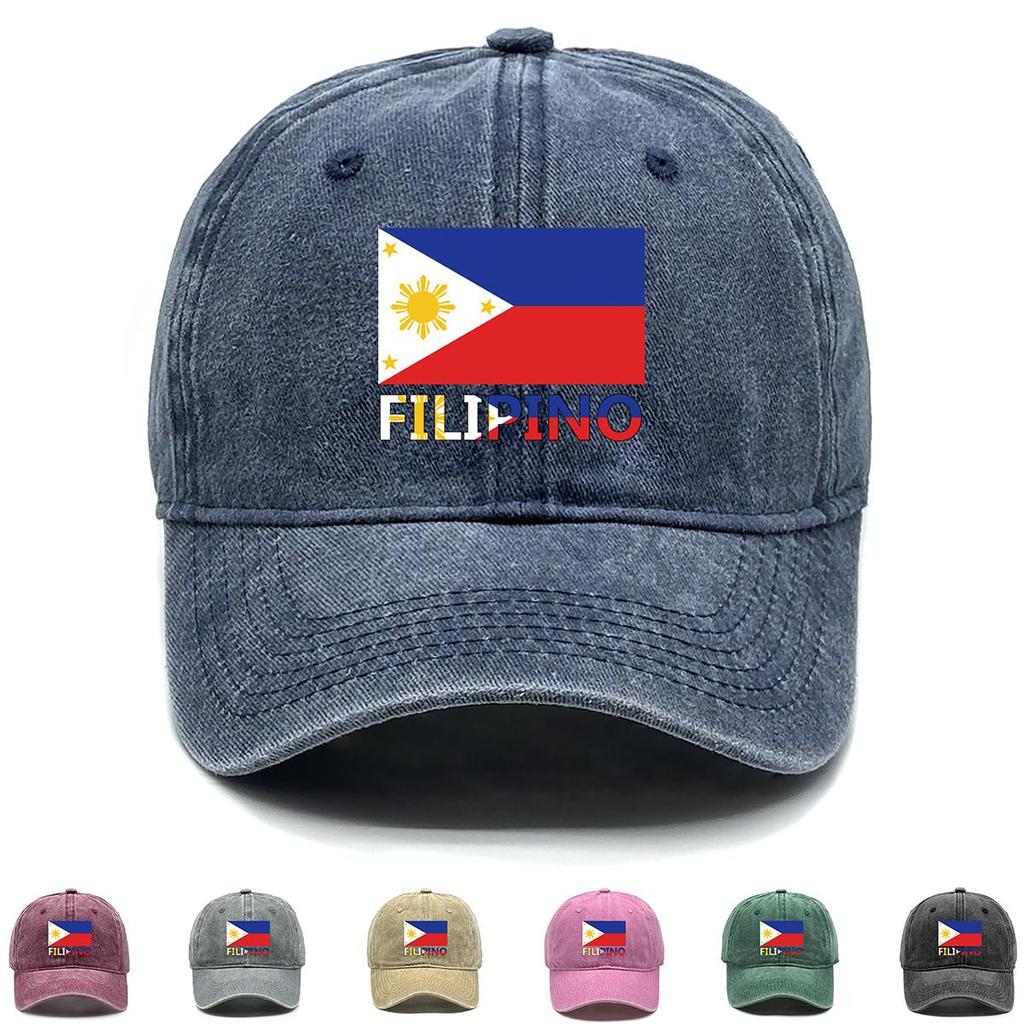 Flag of Filipino Print Adjustable Baseball Hat, Patriotic Flat Cap Trendy Slouchy Sun Visor Raw Brim Snapback Baseball Cap