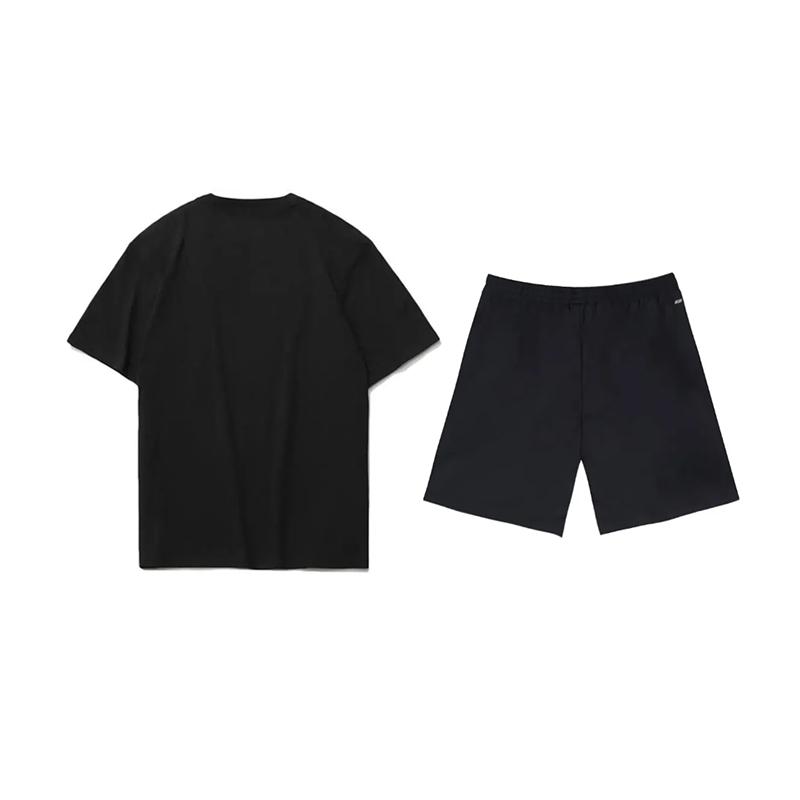 Футболка пуловер с круглым вырезом и короткими рукавами с принтом логотипа Li Ning, свободная, модная, универсальная, шорты, повседневный спортивный комплект, унисекс, комплекты AHST791-1+YKSV147-2