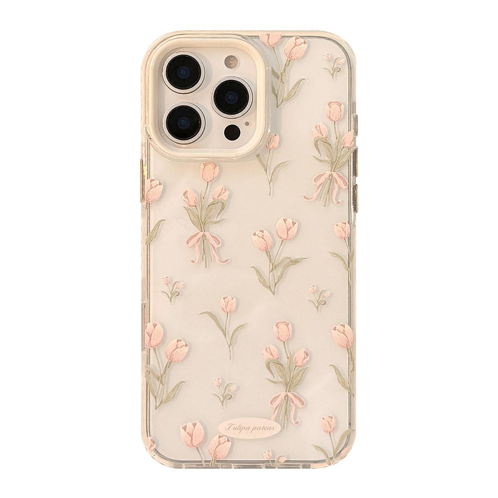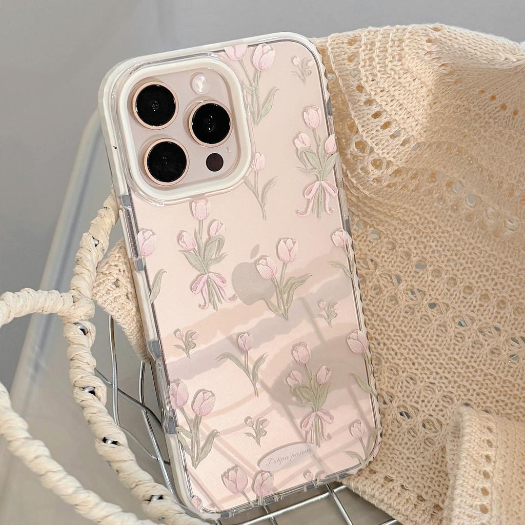 Сладкий розовый тюльпан Чехол для мобильного телефона iPhone 15 Apple 16 Promax Подходит для 14 Маленькие свежие цветы 13 Прозрачный 11