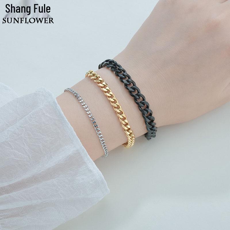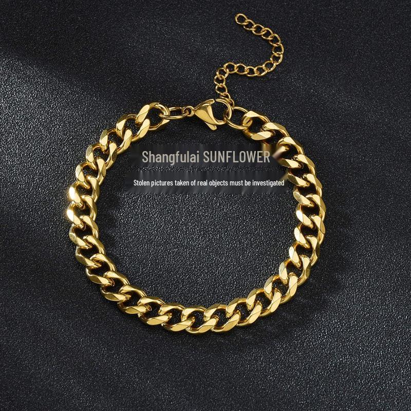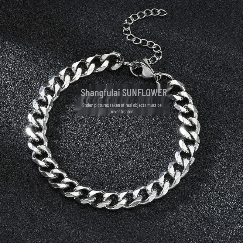 Европейский и американский хип-хоп кубинский браслет-цепь: Полированная нержавеющая сталь, шестигранный простой дизайн из титановой стали для мужчин