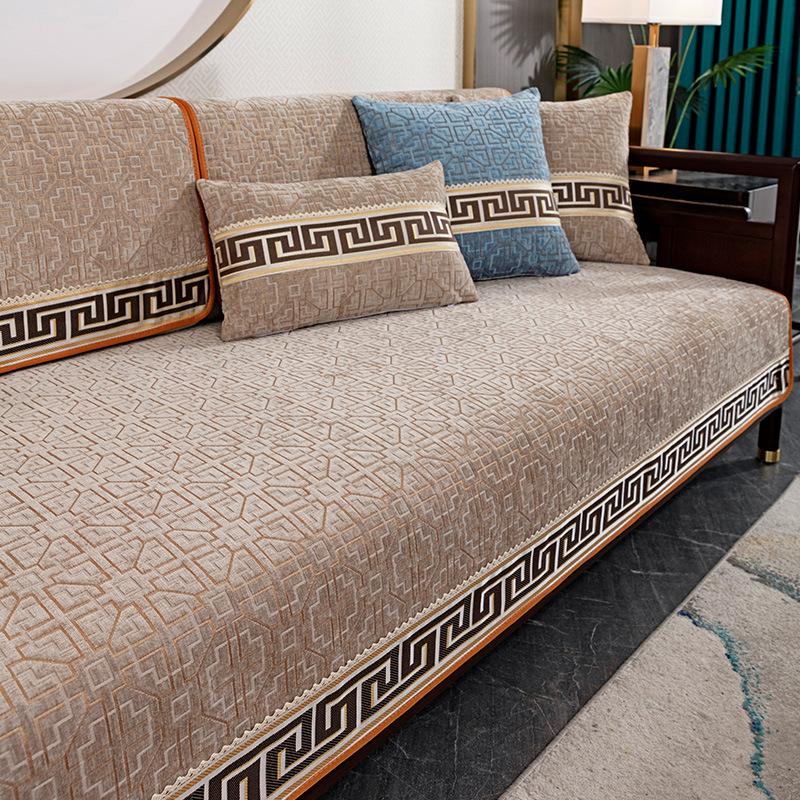 Подушка для дивана Роскошный Высокий стиль Новый китайский стиль Четыре сезона Нескользящая Универсальная Подушка для сиденья из массива дерева Полотенце для спинки Кожаный чехол для дивана