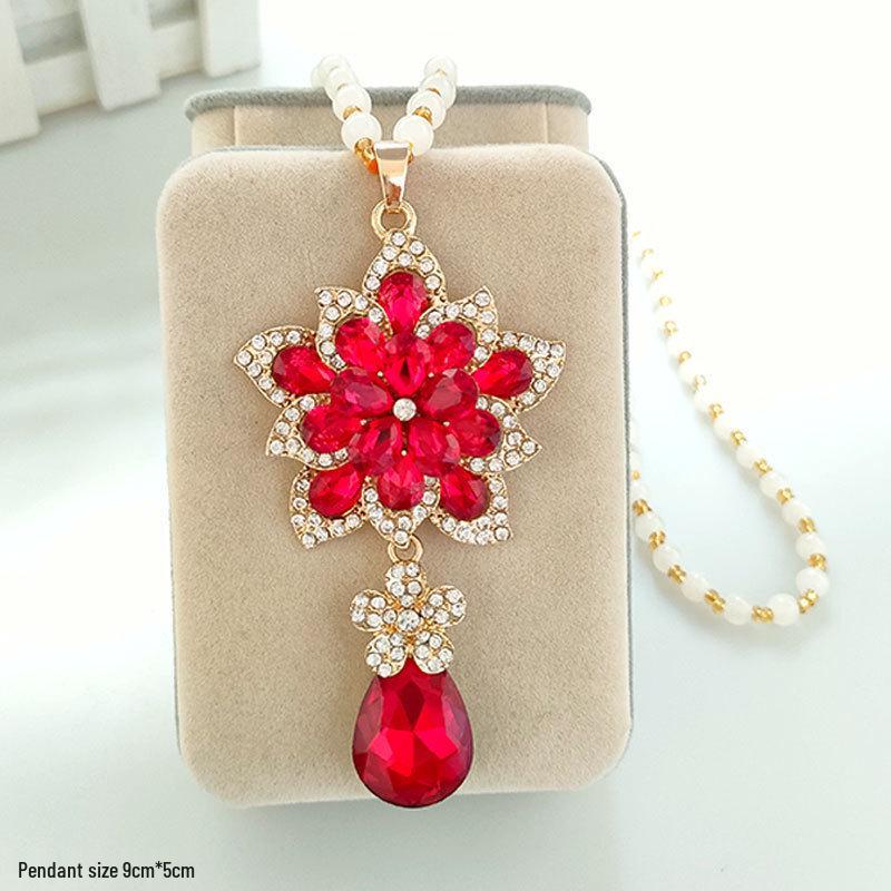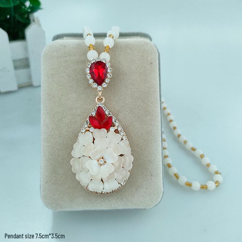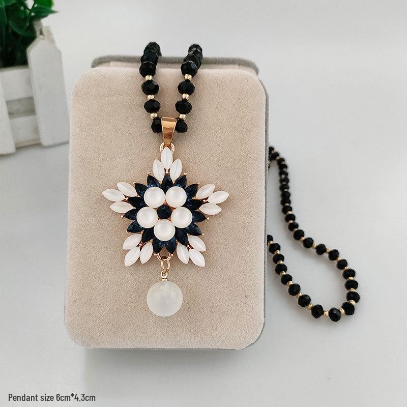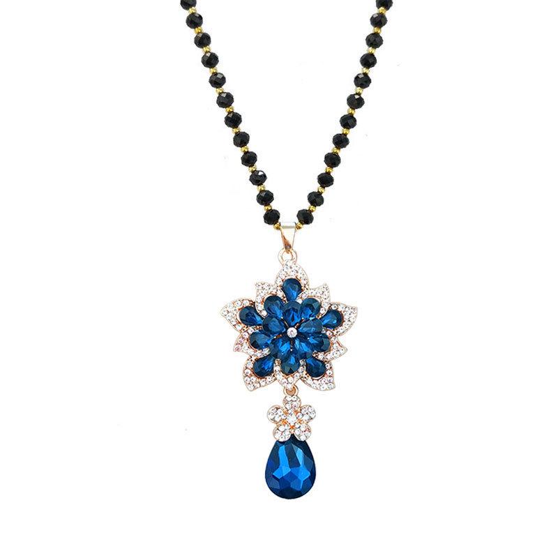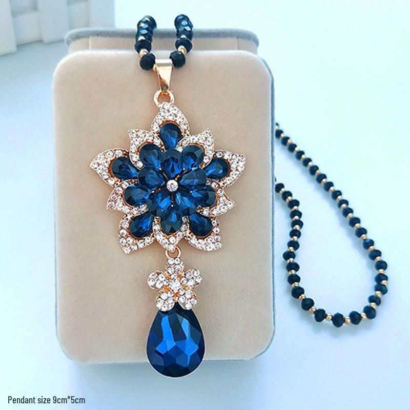 Женское длинное ожерелье с подвеской в виде цветка - Элегантная цепочка-свитер в виде капли воды для осени/зимы