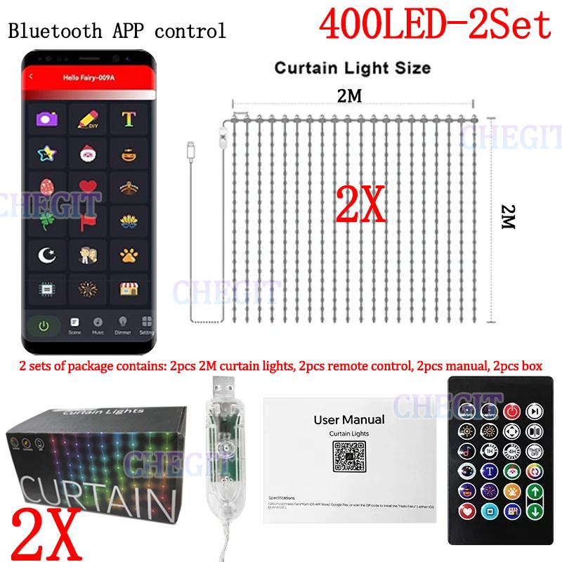 400 светодиодов Управление через приложение Bluetooth Умные гирлянды для штор Сделай сам Светодиодная гирлянда RGB Сказочные огни Меняющийся дисплей на Рождество День святого Валентина