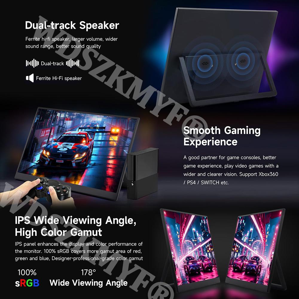 14/15.6/16-дюймовый портативный монитор IPS-панель USB-C 1080P FHD MINIHDMI 60 Гц Совместимый дорожный дисплей для ПК ноутбука Xbox Switch