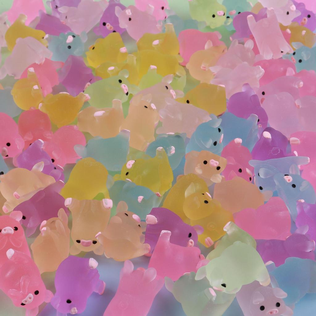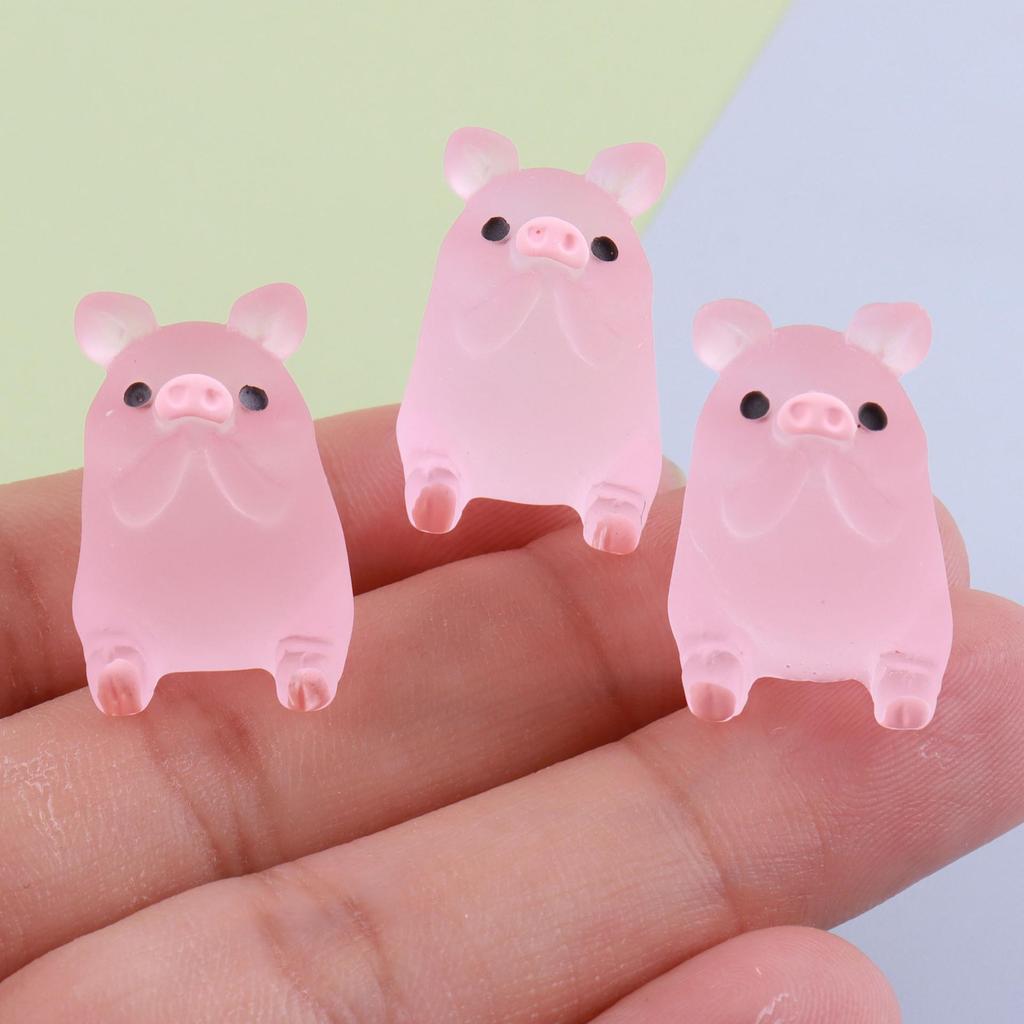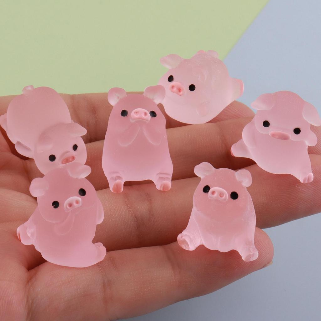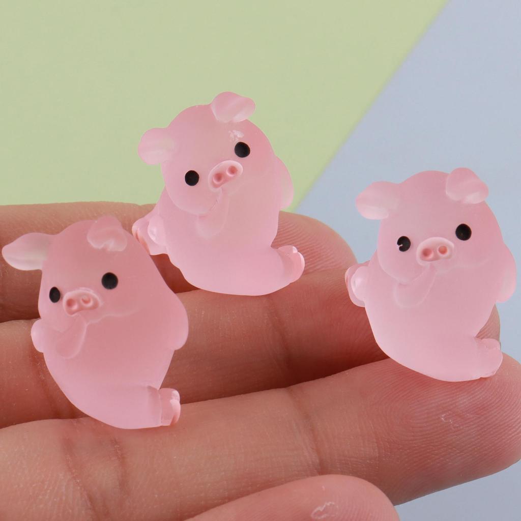 Светящийся розовый поросенок, миниатюрный брелок-шарм из смолы, украшение