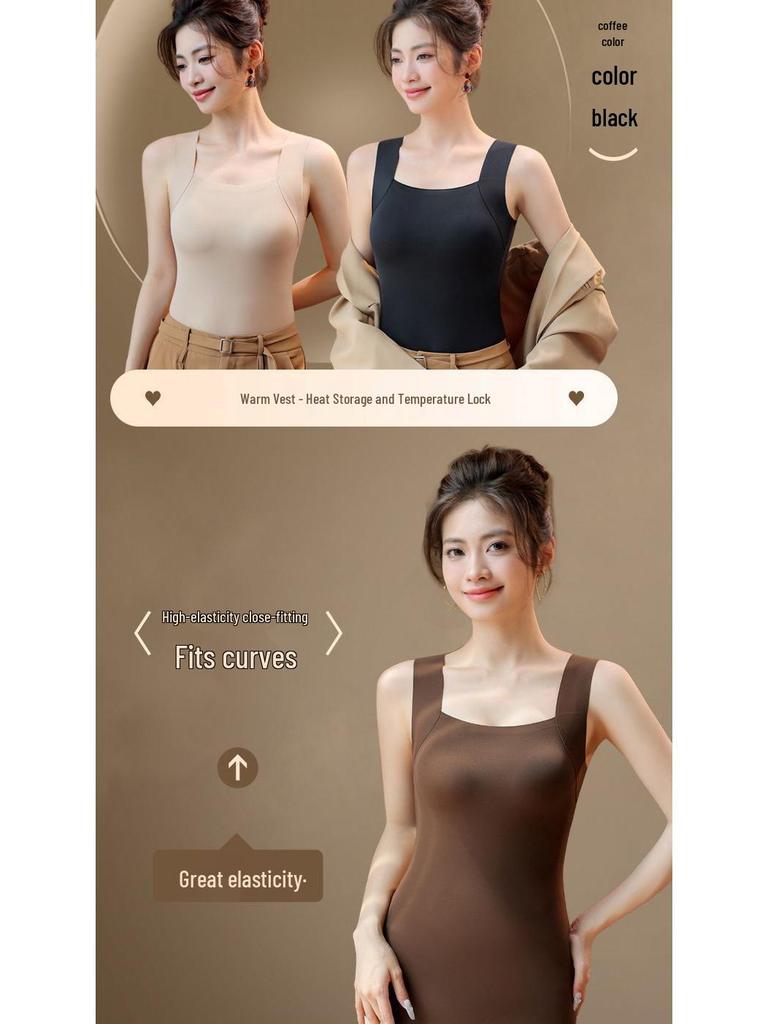 Женский бесшовный теплый жилет - Фиксированная чашка, Базовый слой для красоты кожи на осень/зиму
