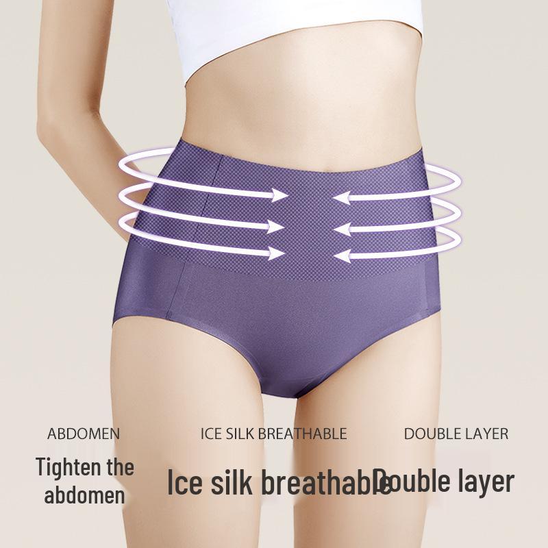 Женские бесшовные антибактериальные трусики с высокой талией, контролем живота и из ледяного шелка