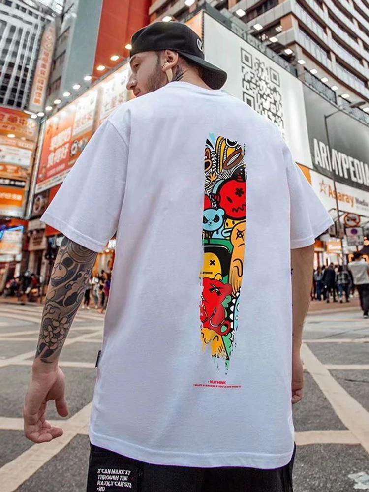 Дьявол Смешное граффити Футболка с коротким рукавом Хип-хоп Мода Эстетичная футболка Аниме Мужские футболки 2022 Лето харадзюку Одежда