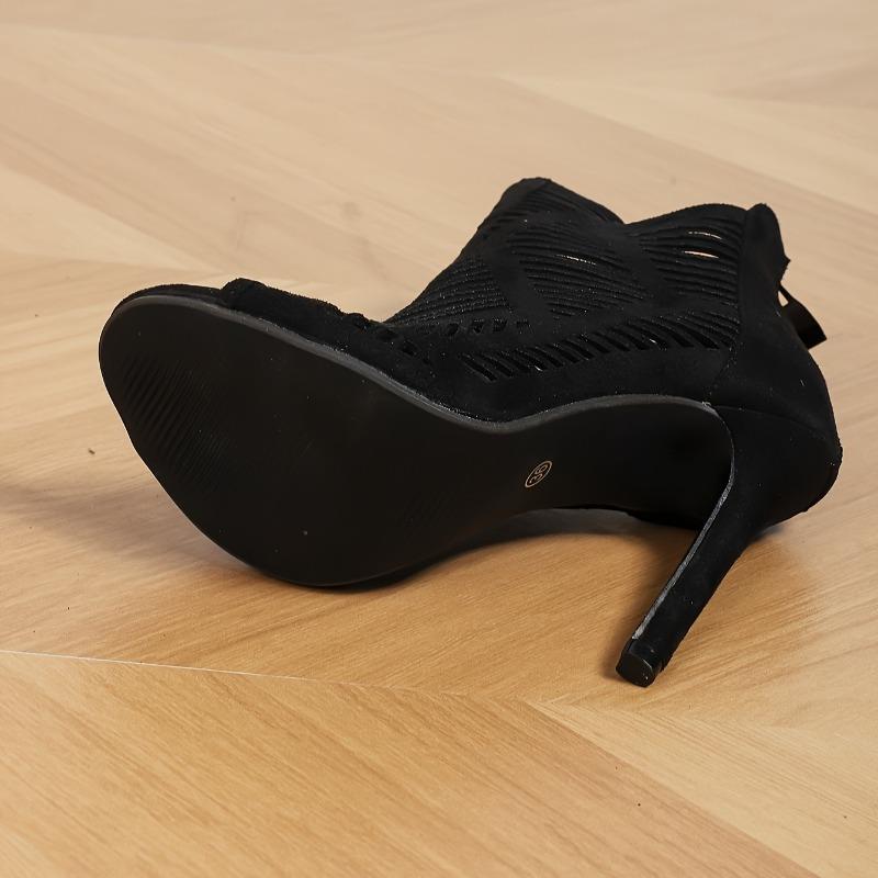 Женские черные босоножки на шпильке с открытым носком и лазерной резкой в виде сетки, ботильоны для платья на высоком каблуке с резиновой подошвой для всех сезонов, босоножки на высоком каблуке