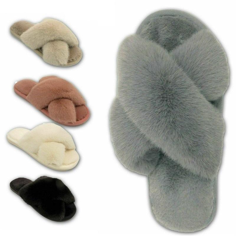 Женские пушистые тапочки для девочек, женские туфли без каблуков с открытым носком из искусственного меха, обувь без каблуков для женщин