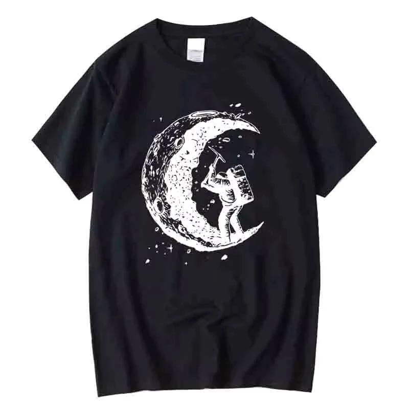 2025 Мужская Высококачественная 100% Хлопковая Летняя Повседневная Прохладная Футболка с Принтом Луны Свободная Мужская Футболка Мужские Футболки Мужские Футболки с Принтом