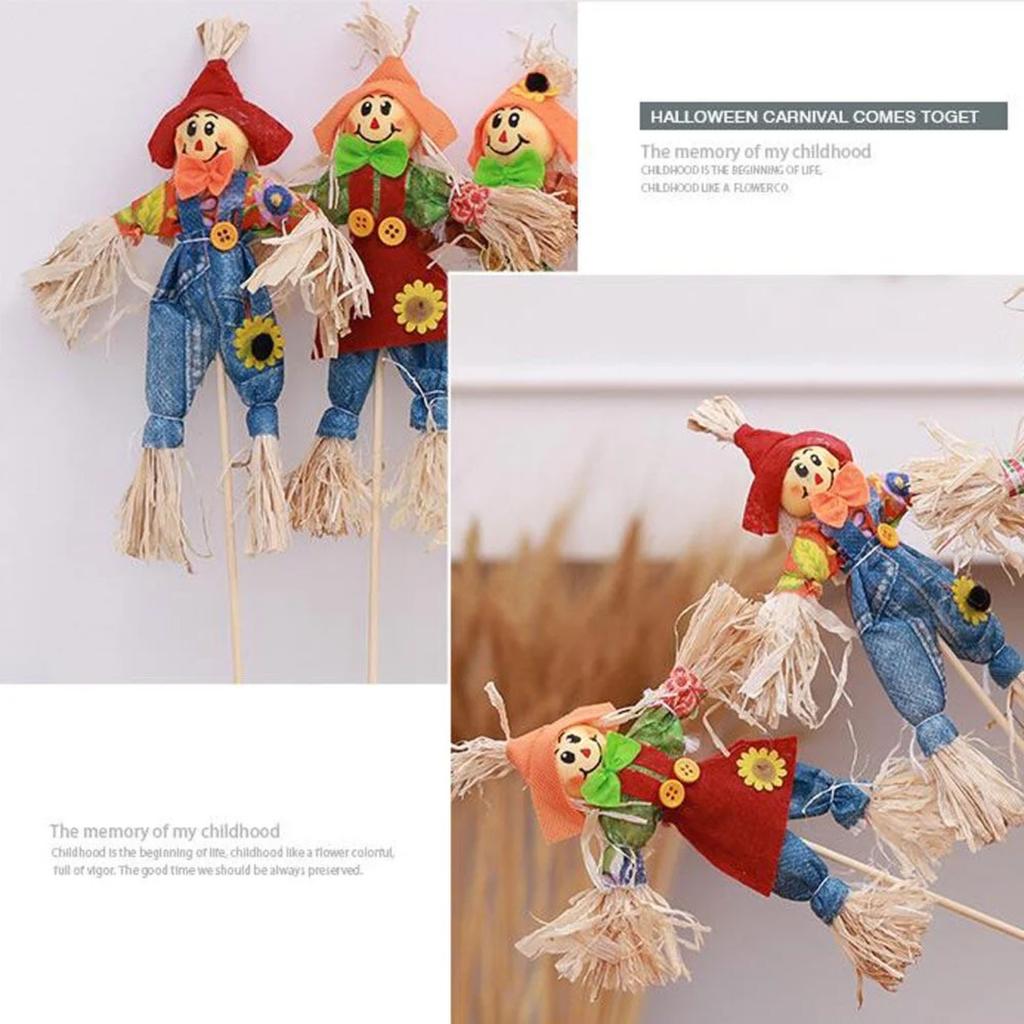 Small Halloween Scarecrow Decoration Fall Harvest Standing Scarecrow Decors For Autumn Halloween Garden Yard Decoration
