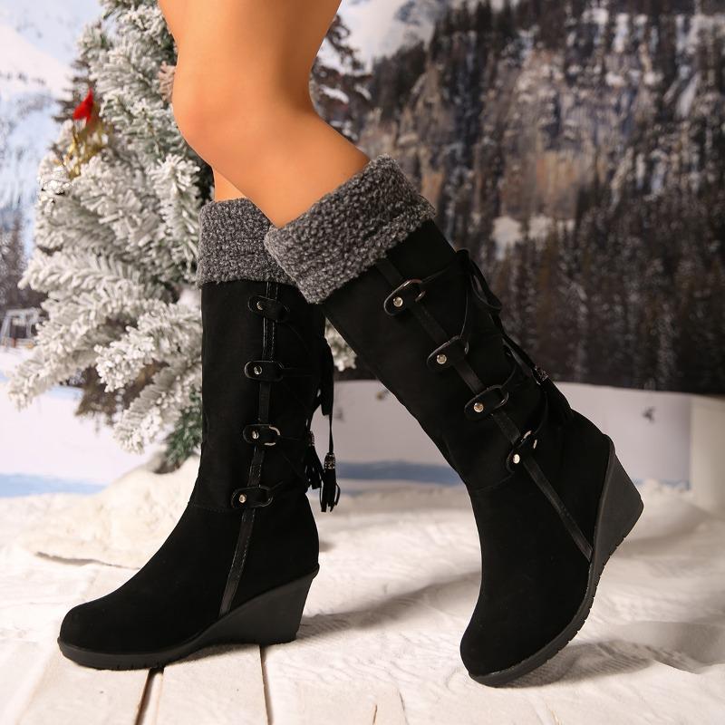 Высокие ботинки Зимние Новые Круглый носок На меху Клепки Мягкая подошва Нескользящие Износостойкие На танкетке Хлопковые ботинки — купить товар онлайн с бесплатной доставкой по всему миру!
