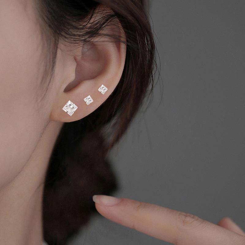 Маленькие квадратные серьги-пусеты с цирконом в корейском стиле для проколотых ушей - Простые нюдовые бриллиантовые пусеты для хряща для создания многослойного образа — купить товар онлайн с бесплатной доставкой по всему миру!