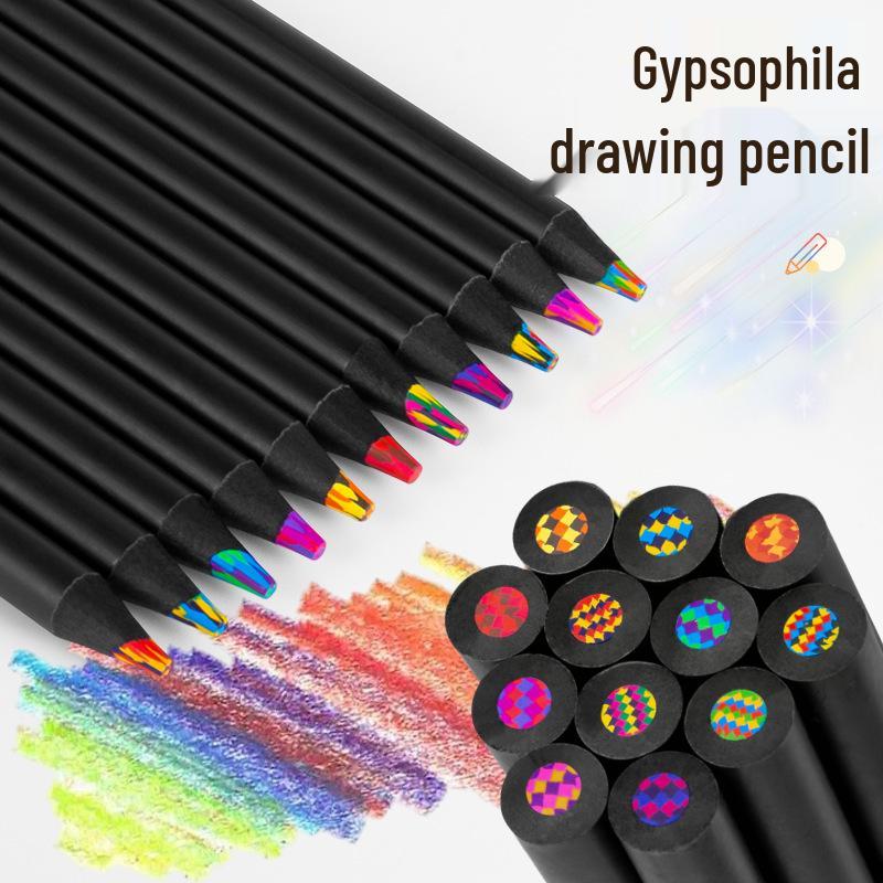 Многоцветный карандаш для детского рисования из черного дерева и гипсофилы с разноцветным грифелем
