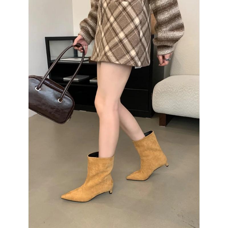 Eilyken Осень Зима Острый Носок Ботильоны Женские Дизайнерские Винтажные Туфли на Тонком Низком Каблуке Современные Короткие Боты Zapatos De Mujer