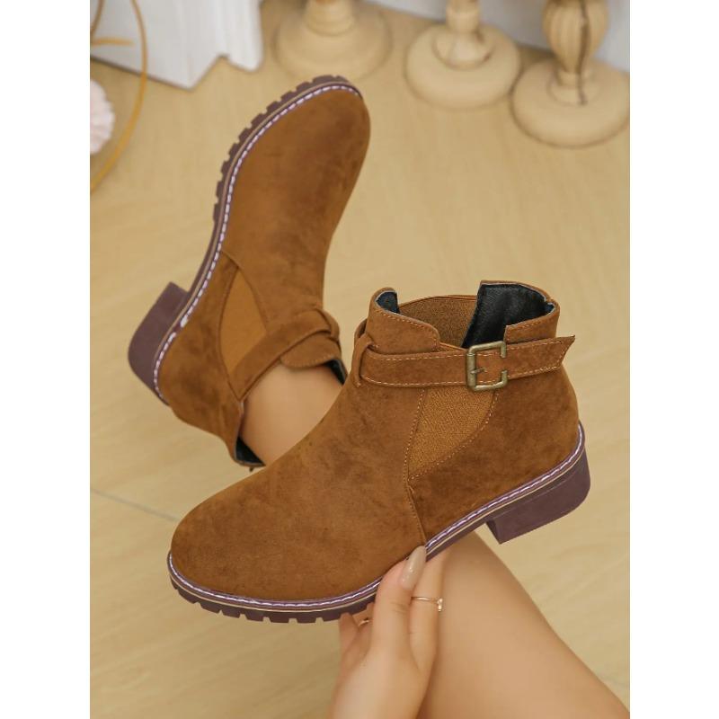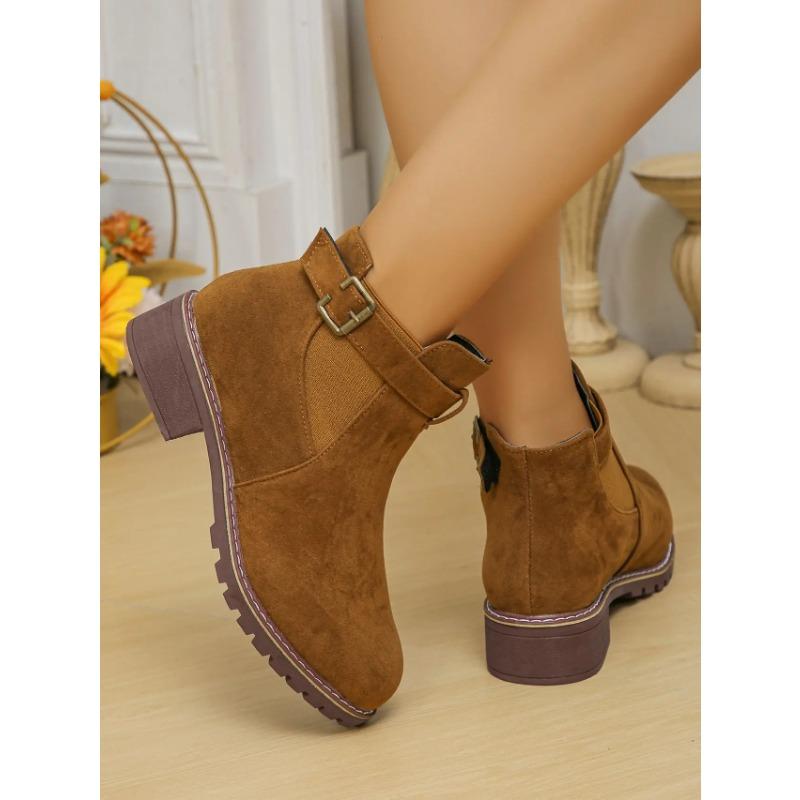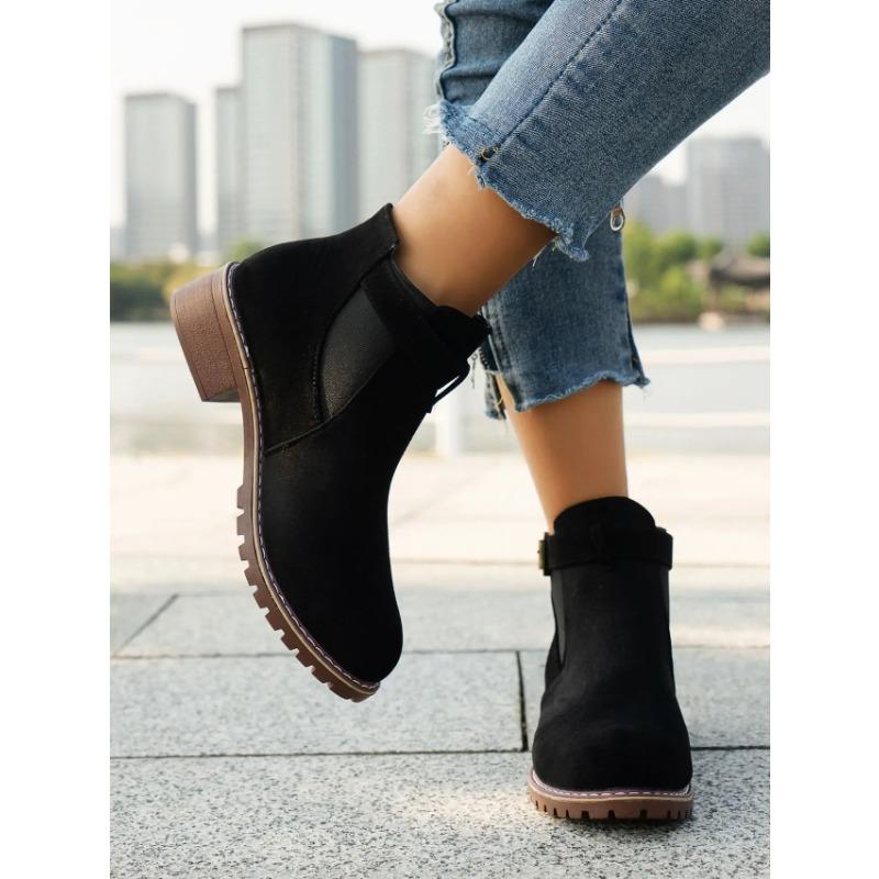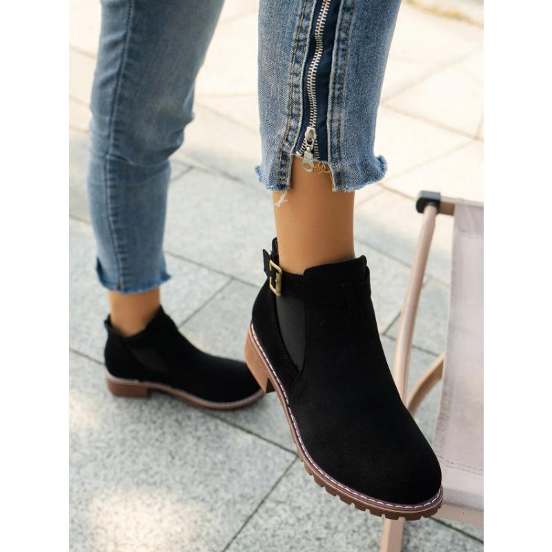 Женская обувь 2025 Высокое качество Пряжка ремня Женские ботинки Мода Большой размер Современные ботинки Женские Горячая распродажа Круглый носок Ботильоны